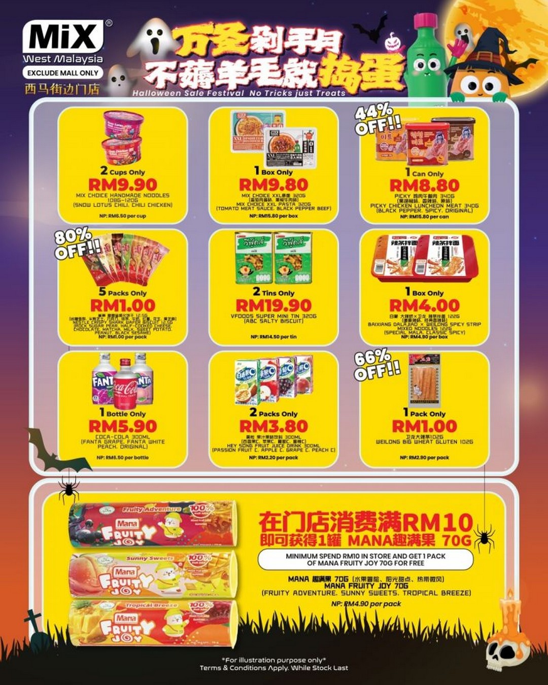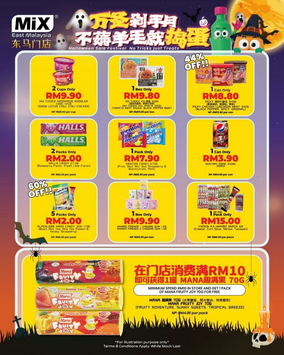 Redeeming the free Mana Fruity Joy 70g is simple. Shoppers just need to visit any participating MiX Store in West or East Malaysia and spend at least RM10 in a single receipt. The free candy is given randomly and is limited to one per receipt, while stocks last. It’s a great bonus for those who are planning to shop for Halloween snacks, offering a fun surprise along with the savings.