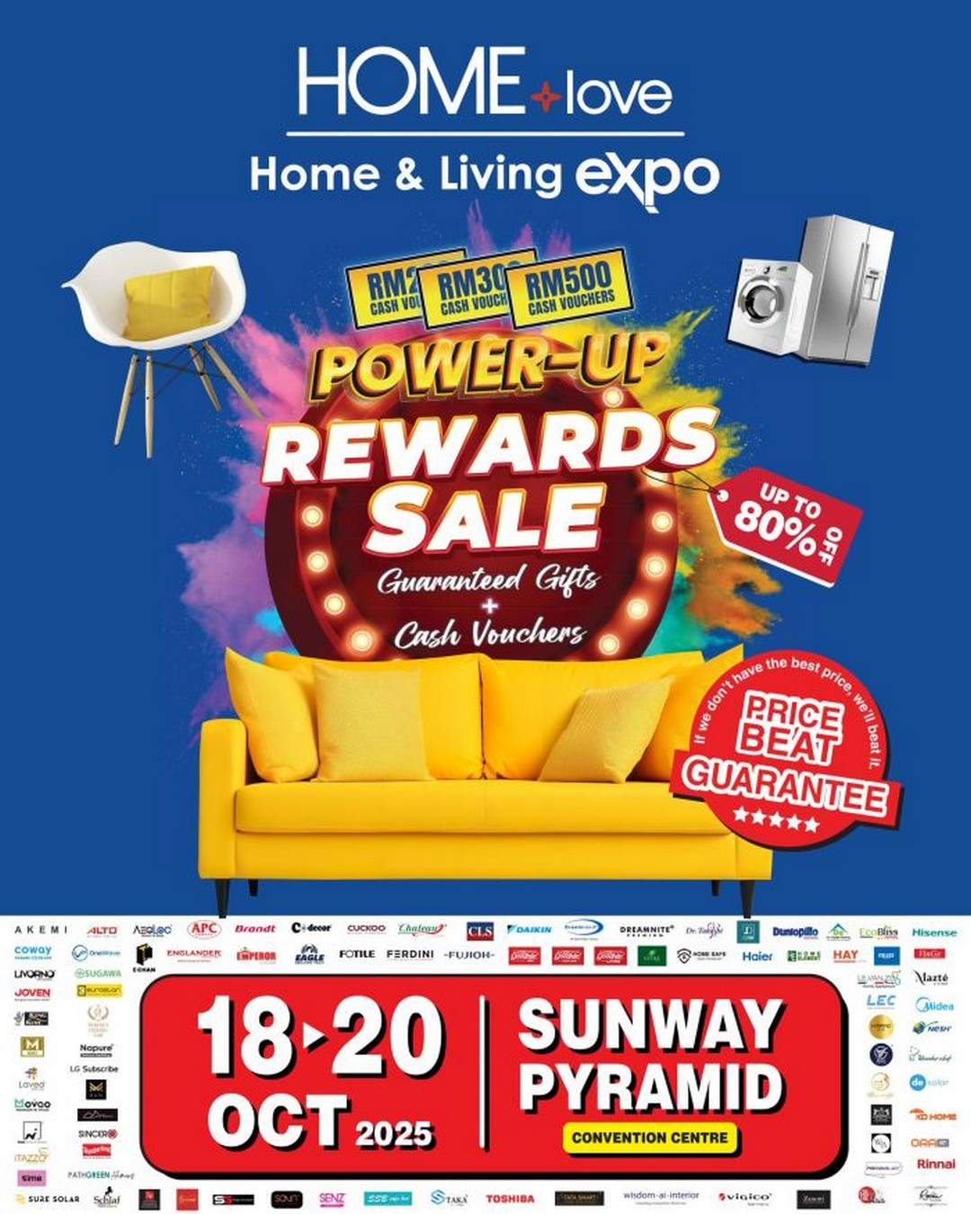 Don’t miss out on this exciting event. From 18 to 20 October 2025, Sunway Pyramid Convention Centre will be buzzing with incredible deals, exclusive rewards, and home inspiration. Plan your visit, register on-site, and make the most of this limited-time opportunity to elevate your home’s style and functionality while enjoying unbeatable savings. HOMElove Home & Living Expo truly delivers value, variety, and excitement — making it a must-visit for all Malaysians passionate about their homes.