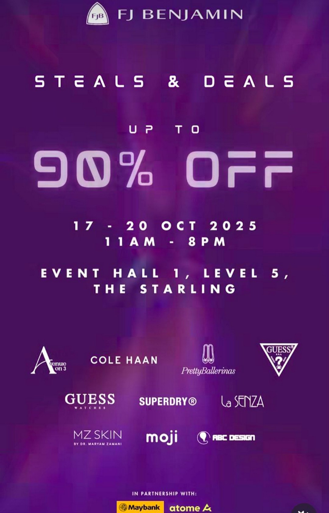 Fashion lovers and savvy shoppers, mark your calendars because one of the most anticipated warehouse sales in Malaysia is just around the corner! FJ Benjamin is back with their much-loved Steals & Deals Warehouse Sale, offering unbelievable discounts of up to 90% on a wide selection of luxury fashion, accessories, watches, lingerie, skincare, and more. Taking place from 17 to 20 October 2025, this sale promises not only incredible bargains but also a shopping experience that fashion enthusiasts simply cannot afford to miss.