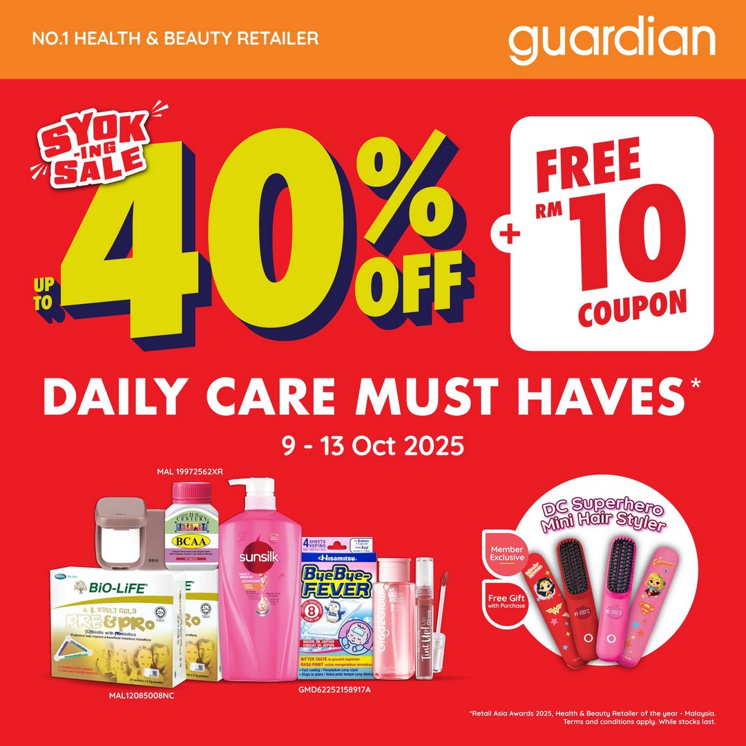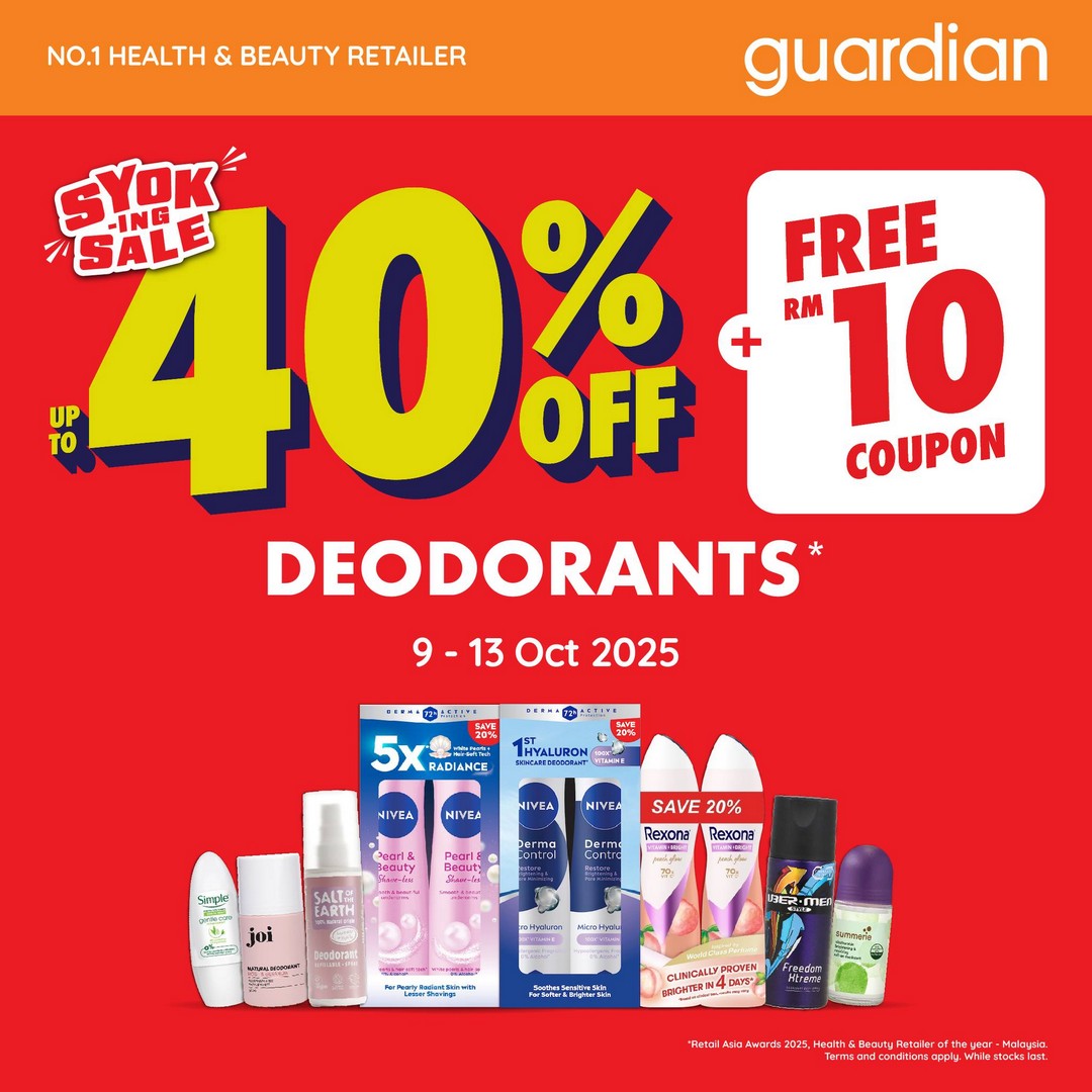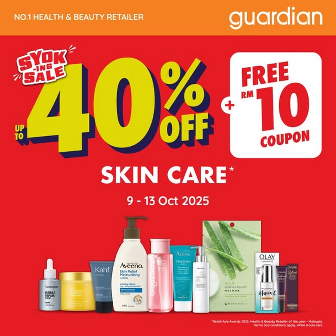 Looking for a perfect time to restock all your daily essentials without burning a hole in your wallet? Guardian Malaysia has just the deal for savvy shoppers looking to save while keeping their health, beauty, and personal care routines in check. From 9th to 13th October 2025, Guardian Malaysia is offering an incredible up to 40% off on a wide range of products, from health supplements and personal care items to skincare and cosmetics. It’s a promotion designed to help everyone grab their must-have items while enjoying significant savings.