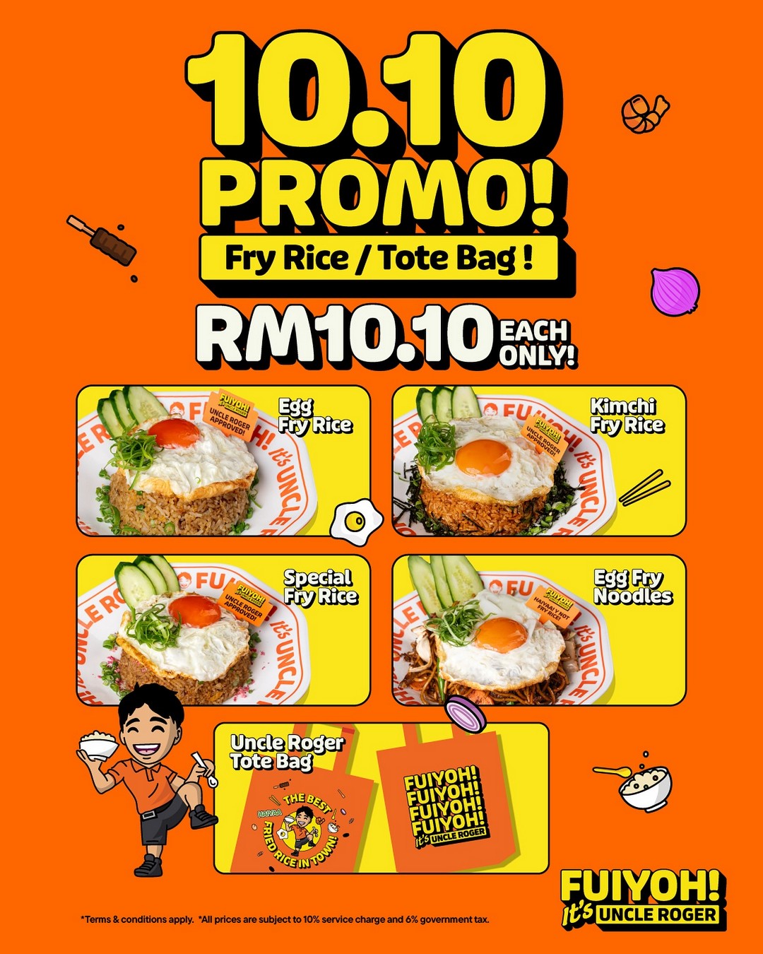 If there’s one way to celebrate 10.10 in true Malaysian style, it’s definitely with Fuiyoh! It’s Uncle Roger. On 10 October 2025, food lovers and bargain hunters alike can rejoice with a special one-day-only promotion that’s impossible to ignore. For just RM10.10, you can get your hands on a plate of their famously tasty Fry Rice or even an iconic Uncle Roger Tote Bag. Yes, you read that correctly—RM10.10 each, no hidden catches, no complex requirements. Just delicious food and fun merchandise at a price that almost seems like a typo.