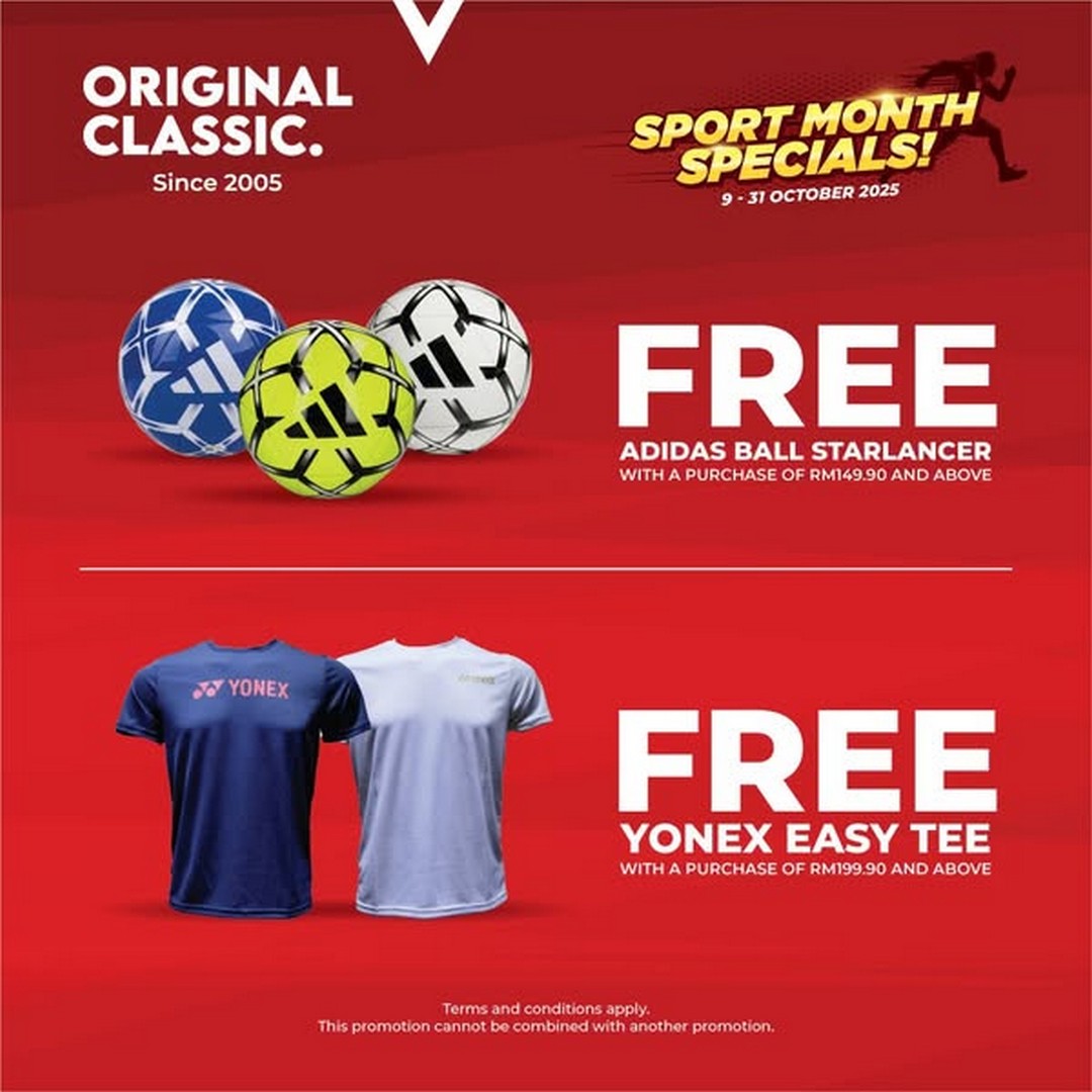 In conclusion, Original Classic’s Sport Month Specials from 9 to 31 October 2025 is more than just a sale – it is an invitation to embrace a more active lifestyle, upgrade your sports gear, and enjoy unbeatable deals. Whether for personal use, family, or gifting purposes, this promotion offers something valuable for everyone. With a variety of products, quality assurance, and knowledgeable support from store staff, shoppers are in for an enjoyable and rewarding experience.