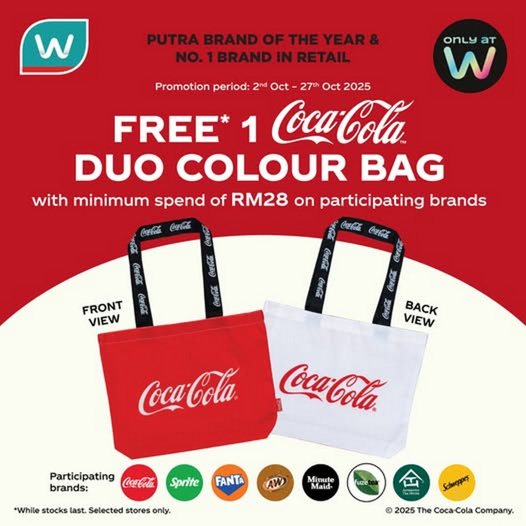 Watsons Malaysia is back with another irresistible treat for shoppers who love both style and savings. From now until 27 October 2025, anyone who spends RM28 on Coca-Cola brands at Watsons is entitled to receive a FREE Duo Colour Bag. It’s the perfect opportunity for shoppers to carry their essentials in style while enjoying their favourite beverages.
