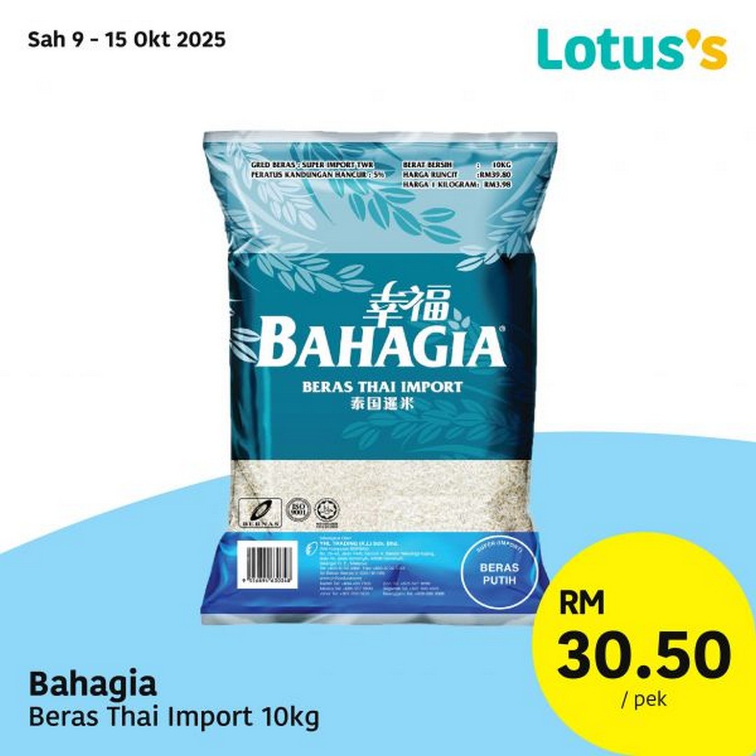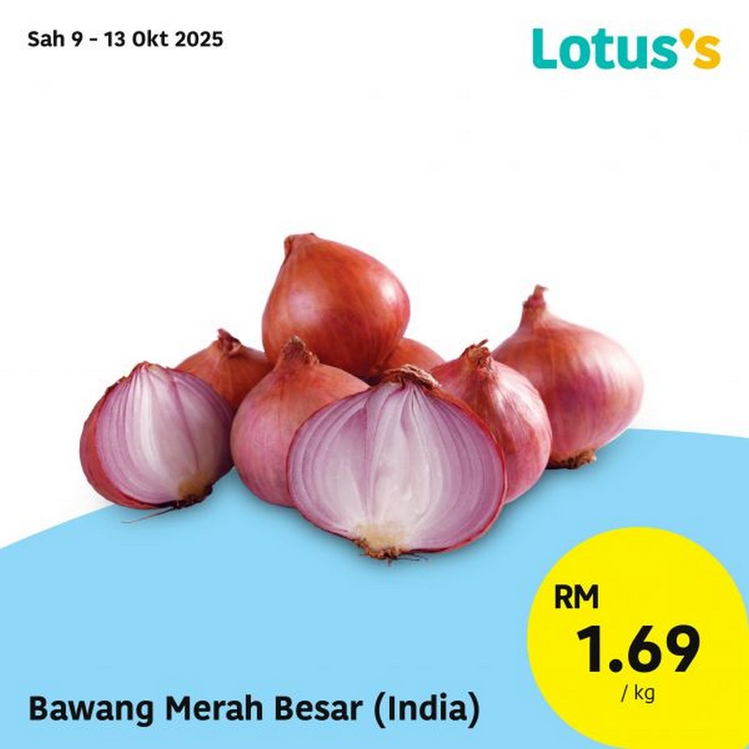 For example, the Bahagia Beras Thai Import 10kg is now priced at just RM30.50 per pack, making it the perfect time to stock up on quality rice for the family. And if you’ve been keeping an eye on your kitchen budget, the Bawang Merah Besar (India) is now only RM1.69 per kg from 9 to 13 October 2025 — a rare price point for an essential ingredient used in most Malaysian dishes.