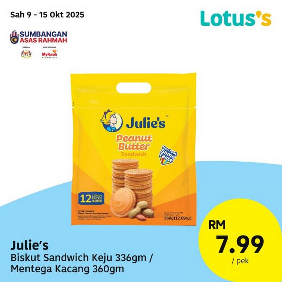 If you’re looking for something sweet to keep in the pantry, Julie’s Biskut Sandwich Keju (336g) and Julie’s Biskut Mentega Kacang (360g) are now just RM7.99 per pack — a wonderful treat for tea time or school snacks.