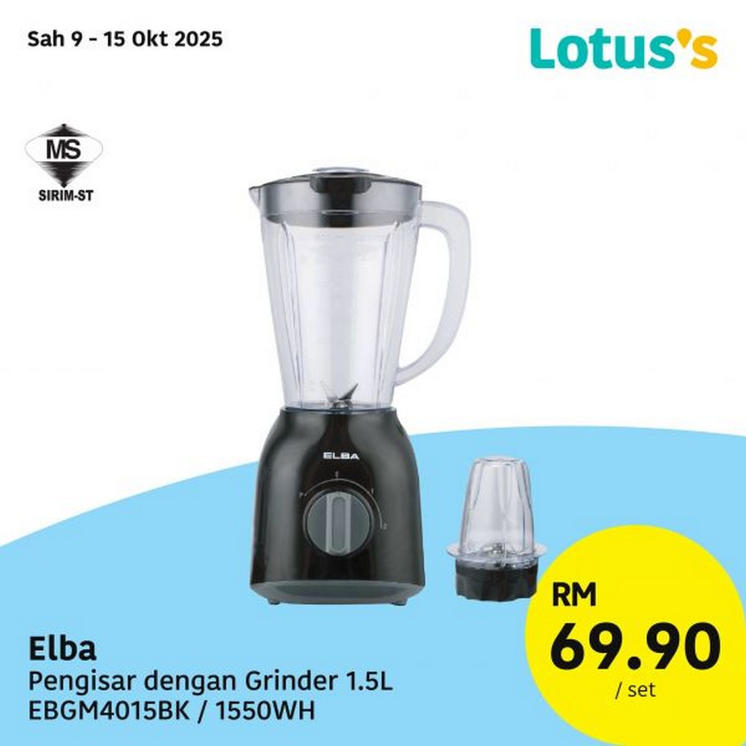 Household chores are made easier and more affordable too, thanks to Boom Serbuk Pencuci Pakaian 2.3kg (assorted variants) at RM9.99 per pack. Meanwhile, if you’re planning to refresh your kitchen setup, check out the Elba Pengisar dengan Grinder 1.5L (EBG M4015BK / 1550WH) — now available for just RM69.90 per set.