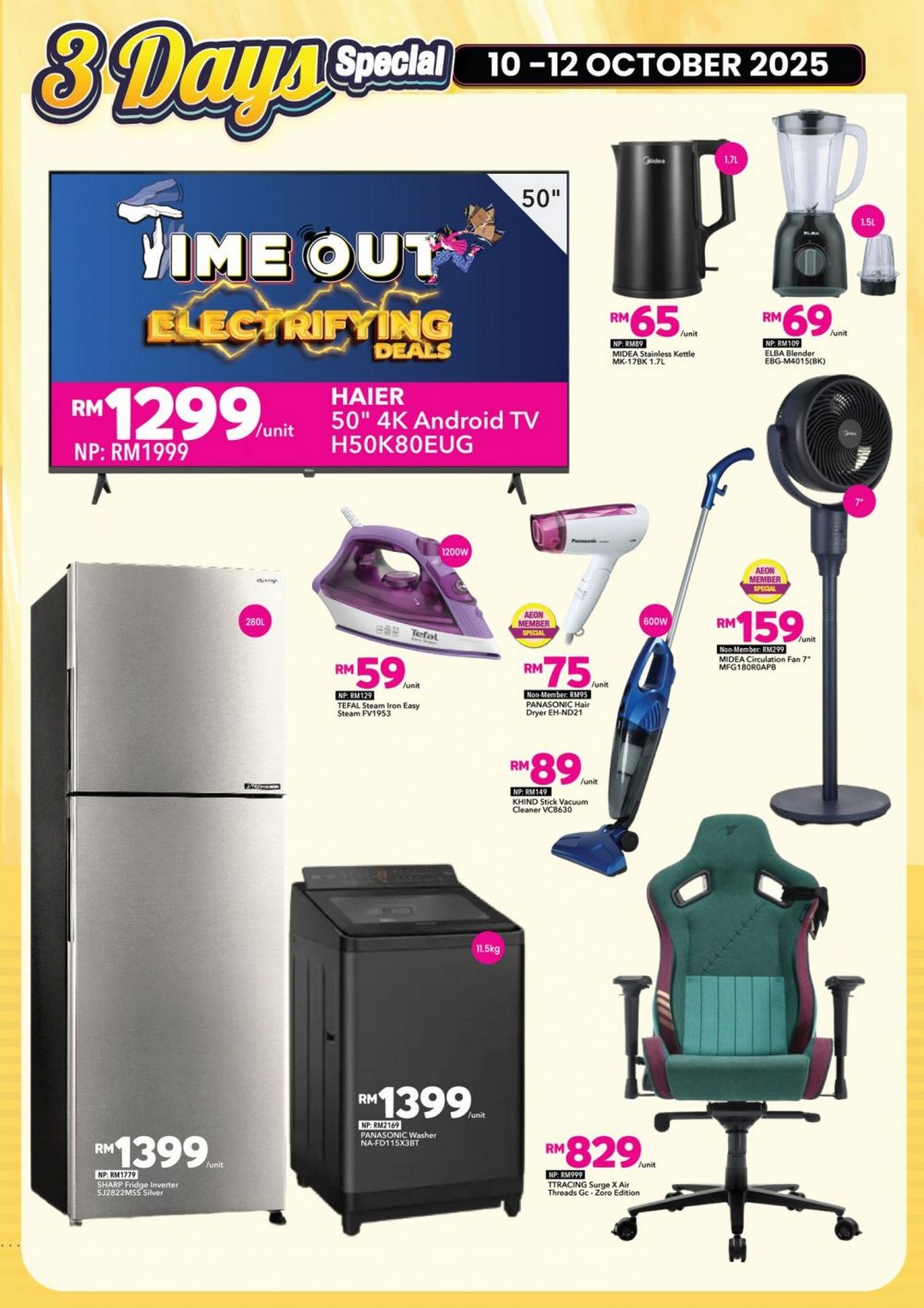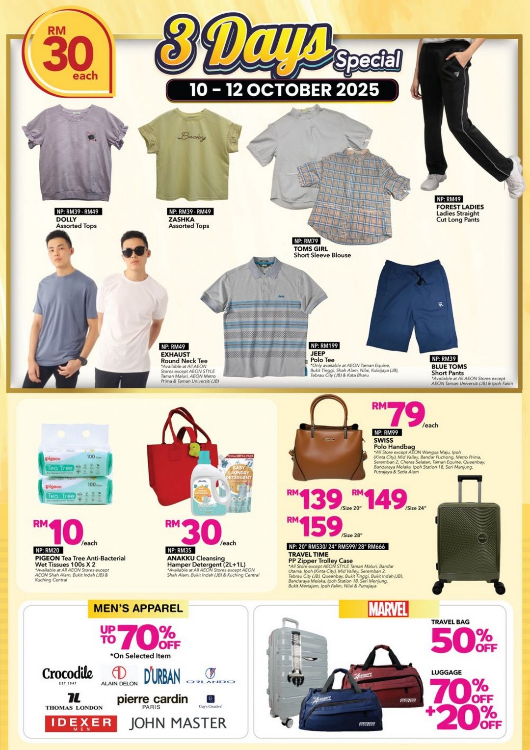 The excitement continues with the 3 Days Special from 10–12 October 2025, where AEON rolls out discounts on big-ticket items like electrical appliances, kitchenware, and fashion. It’s the perfect opportunity to upgrade home essentials or prepare for upcoming holidays without stretching your budget.