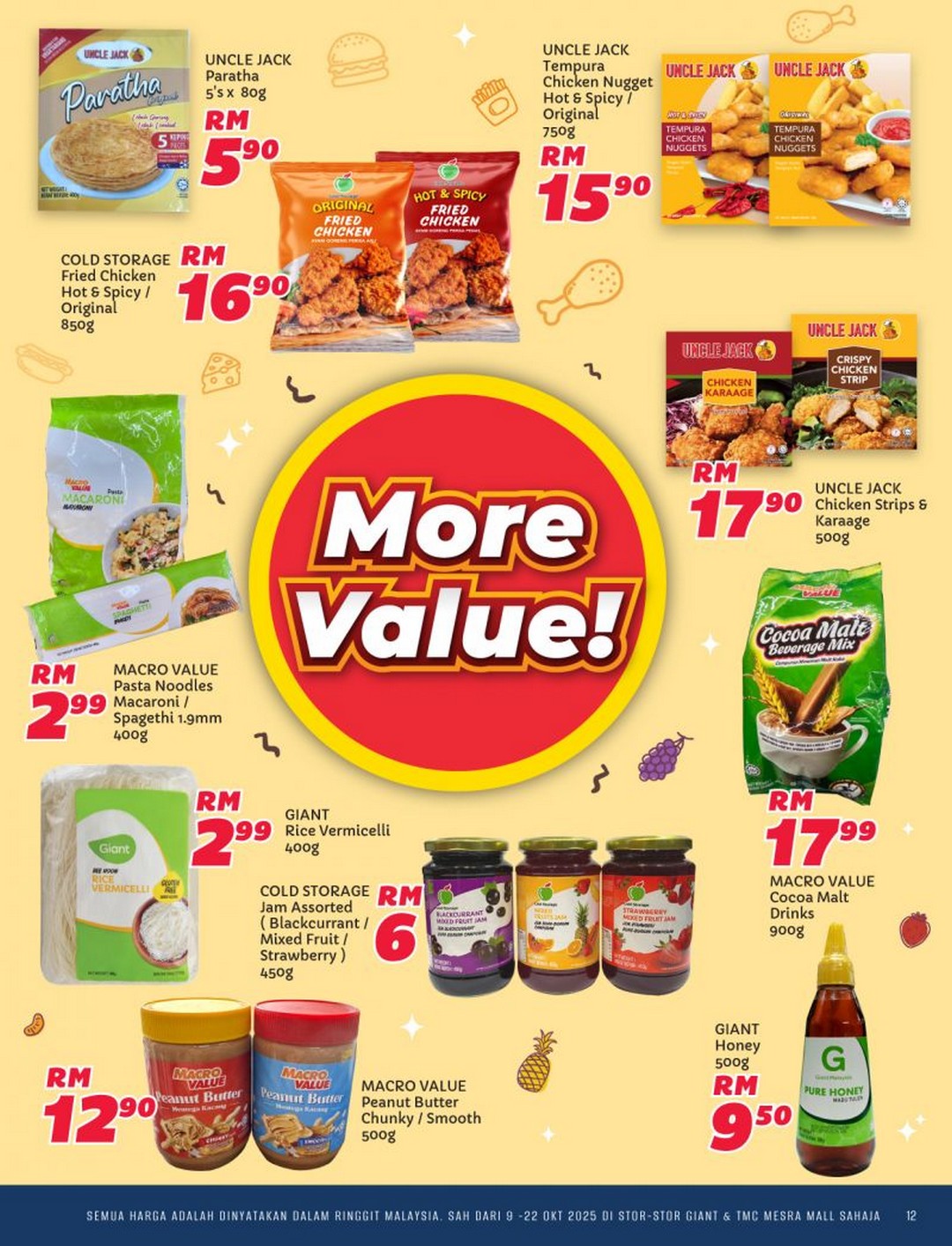 Snacks and ready-to-cook items are also part of the promotion, making it convenient for busy households or those hosting festive parties. Crunchitos French Fries 1kg are priced between RM10.89 and RM12.89, Crunchitos Hash Brown 10pcs at RM10.89, Uncle Jack Paratha at RM5.90, and Fiesta Chicken Nugget Tempura at RM11.99. These products are perfect for creating quick, delicious meals or for serving guests during festive celebrations.