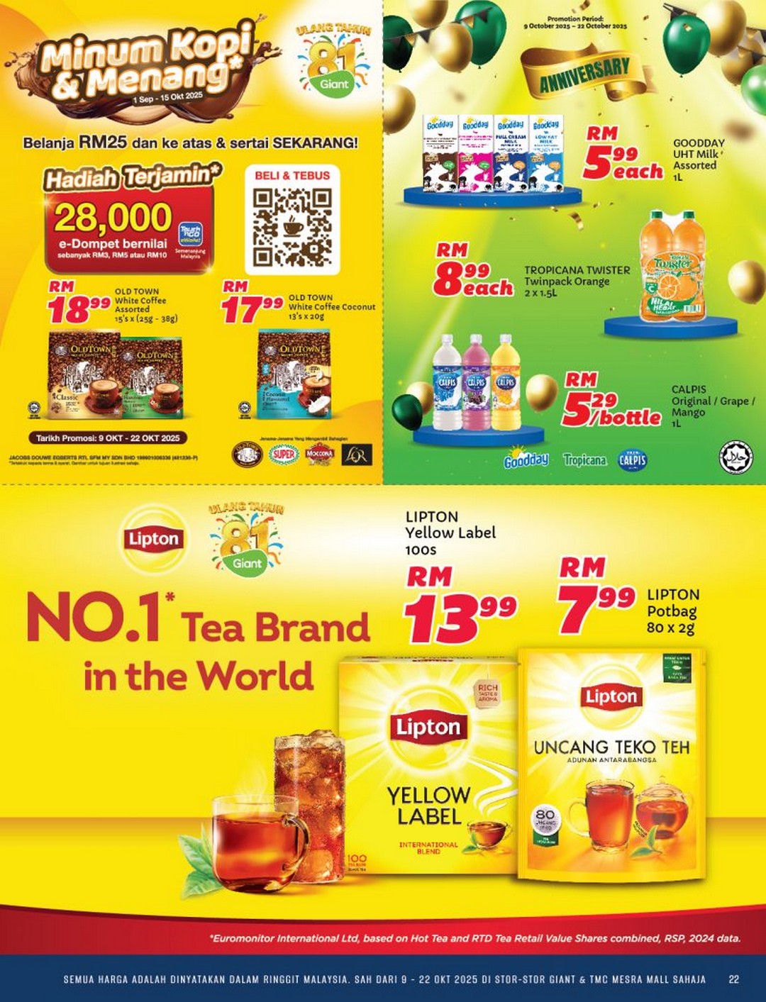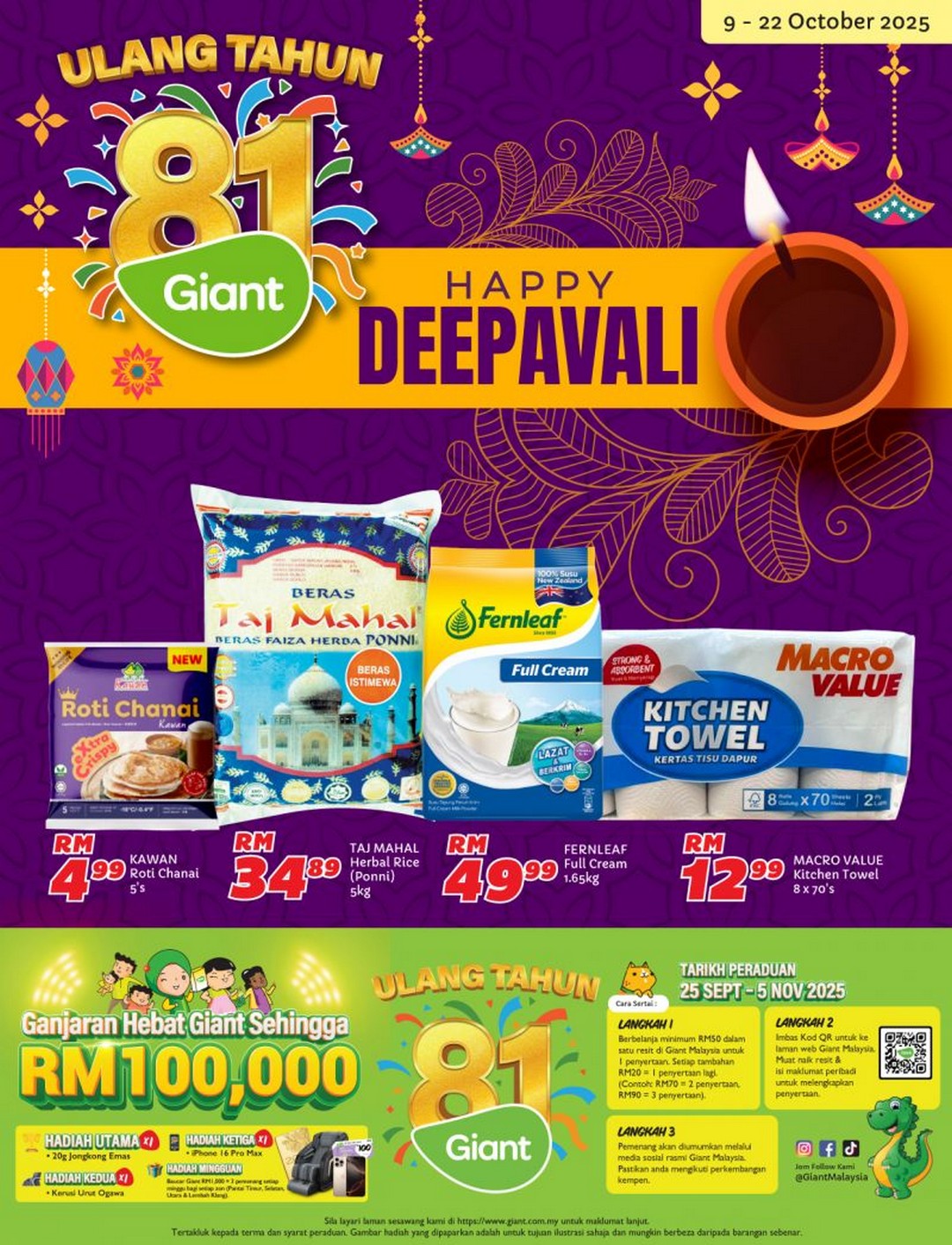 Giant Malaysia is back with a spectacular celebration for its 81st Anniversary, and this year, they are pulling out all the stops with an array of deals and promotions timed perfectly for Deepavali. Running from 25 September to 8 October 2025, the Giant 81st Anniversary Promotion Catalogue offers shoppers the chance to save big on groceries, household essentials, beverages, snacks, and even personal care items. On top of that, there are exciting rewards to be won, amounting to a whopping RM100,000.