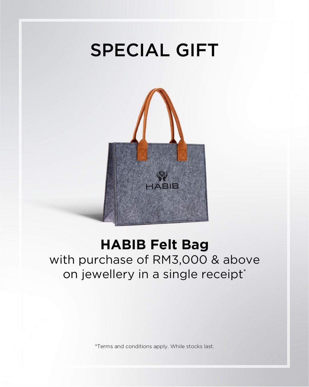 In addition to these generous discounts, HABIB is making the shopping experience even more rewarding with a range of complimentary gifts. Purchases above RM2,000 will receive a HABIB Magique Cloth—a beautiful addition to your jewellery care routine. Spend RM3,000 or more, and customers will receive a stylish HABIB Felt Bag, perfect for safely carrying your treasured finds. For those going all out, purchases of RM5,000 and above on gold, diamond, or gemstone jewellery in a single receipt will include a premium HABIB Jewellery Box, providing an elegant and secure home for your prized items. These thoughtful gifts make shopping at the exhibition not only cost-effective but also exceptionally rewarding.