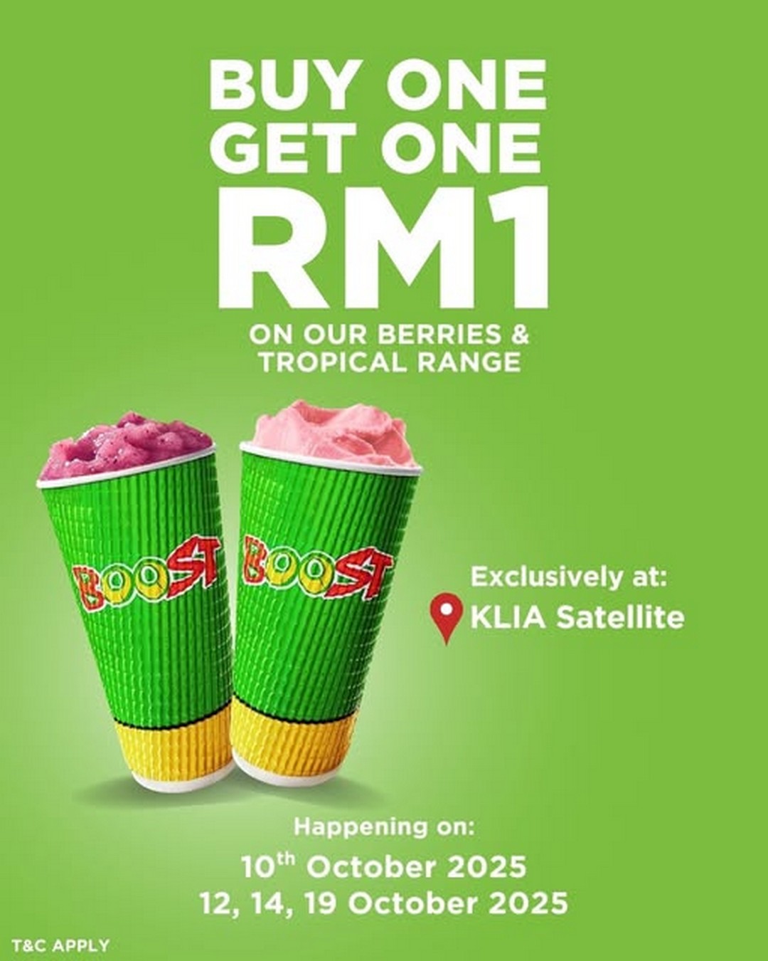 In summary, Boost Juice Bars Malaysia has created a promotion that ticks all the boxes. It’s affordable, it’s convenient, it’s healthy, and it’s fun. With the Buy 1, Get 1 for RM1 deal on the Berries & Tropical Range at their KLIA Satellite outlet, customers are presented with a rare opportunity to enjoy high-quality, freshly made fruit juices at an unbeatable price. The limited dates in October add a sense of urgency and exclusivity, making it an event worth planning for. Whether you’re a long-time fan or new to the brand, this reopening is a chance to indulge in delicious, energising drinks and enjoy the lively, welcoming atmosphere that Boost Juice Bars is known for.