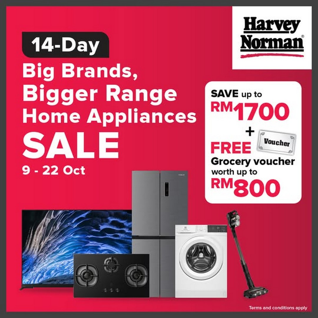 In summary, Harvey Norman Malaysia’s Big Brands, Bigger Range Home Appliances Sale is an unmissable opportunity for anyone looking to upgrade their home appliances with top brands at discounted prices. The combination of a wide selection, free vouchers, the option for in-store or online shopping, and limited-time offers makes it a must-visit event. Whether you’re replacing old appliances, adding new gadgets to your home, or simply exploring options, this sale ensures that you’ll find both quality and value.