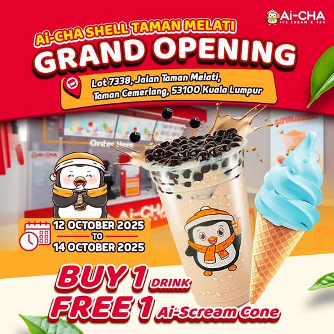 AI-CHA Malaysia is bringing something sweet to Kuala Lumpur, and it’s a celebration that anyone with a love for beverages and treats should not miss. Their latest outlet at Shell Taman Jasmelati is opening its doors on the 12th of October 2025, and they have lined up a delightful promotion to mark the occasion. For those looking to enjoy a refreshing drink and a little extra treat, AI-CHA is offering a complimentary ice cream cone with every drink purchase between the 12th and 14th of October.