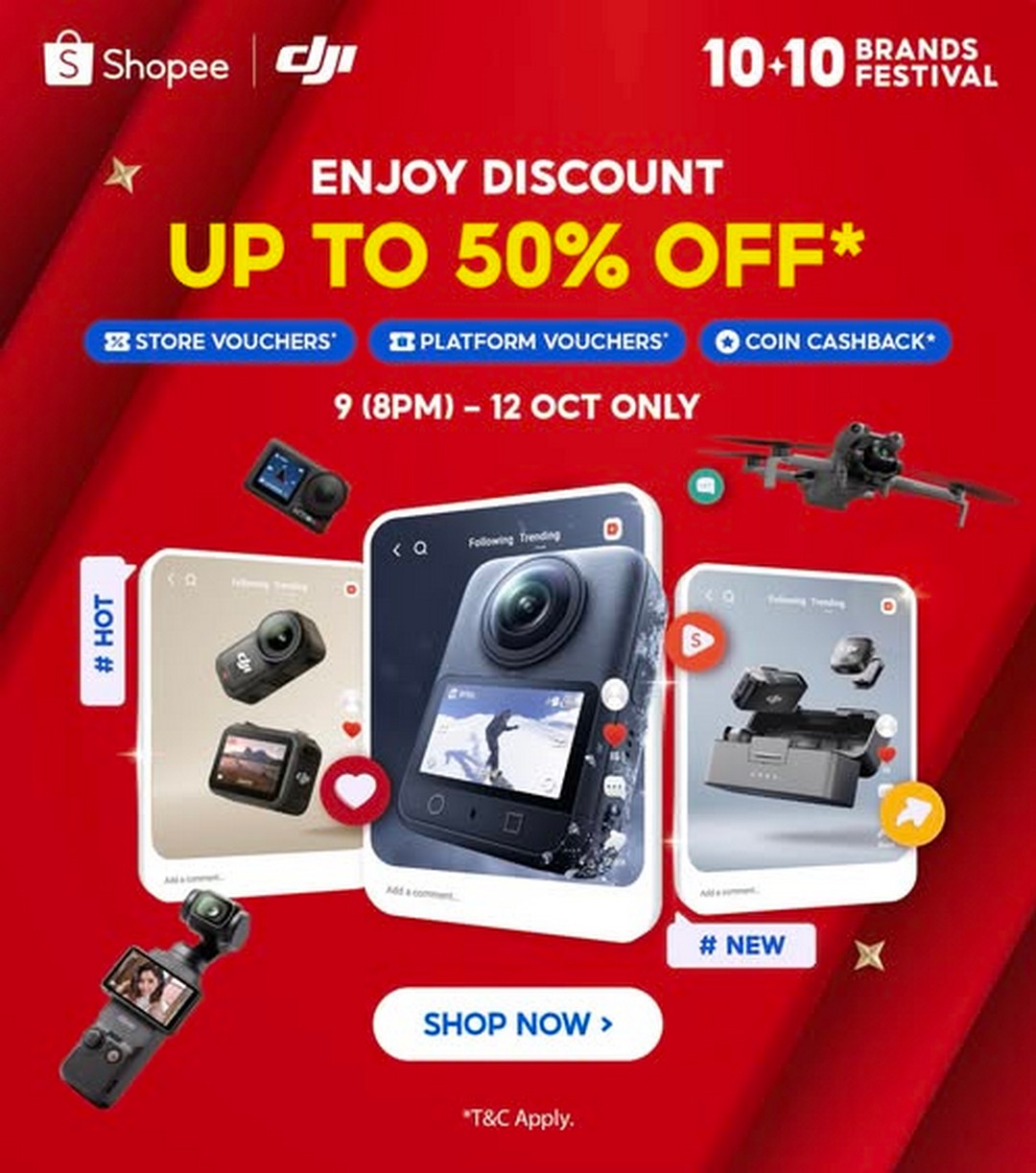 When it comes to capturing breathtaking views, stunning landscapes, or simply creating smooth, cinematic shots, DJI has become the go-to name in drone and camera technology. Whether someone is a professional filmmaker, a travel vlogger, or simply a hobbyist looking to explore the skies, DJI’s innovations have transformed how people capture the world around them. And now, there’s even better news for tech lovers across Malaysia — the DJI Malaysia 10.10 Mega Sale is here, running from 9 to 12 October 2025, offering up to 50% OFF on selected products, alongside exclusive Shopee platform vouchers!