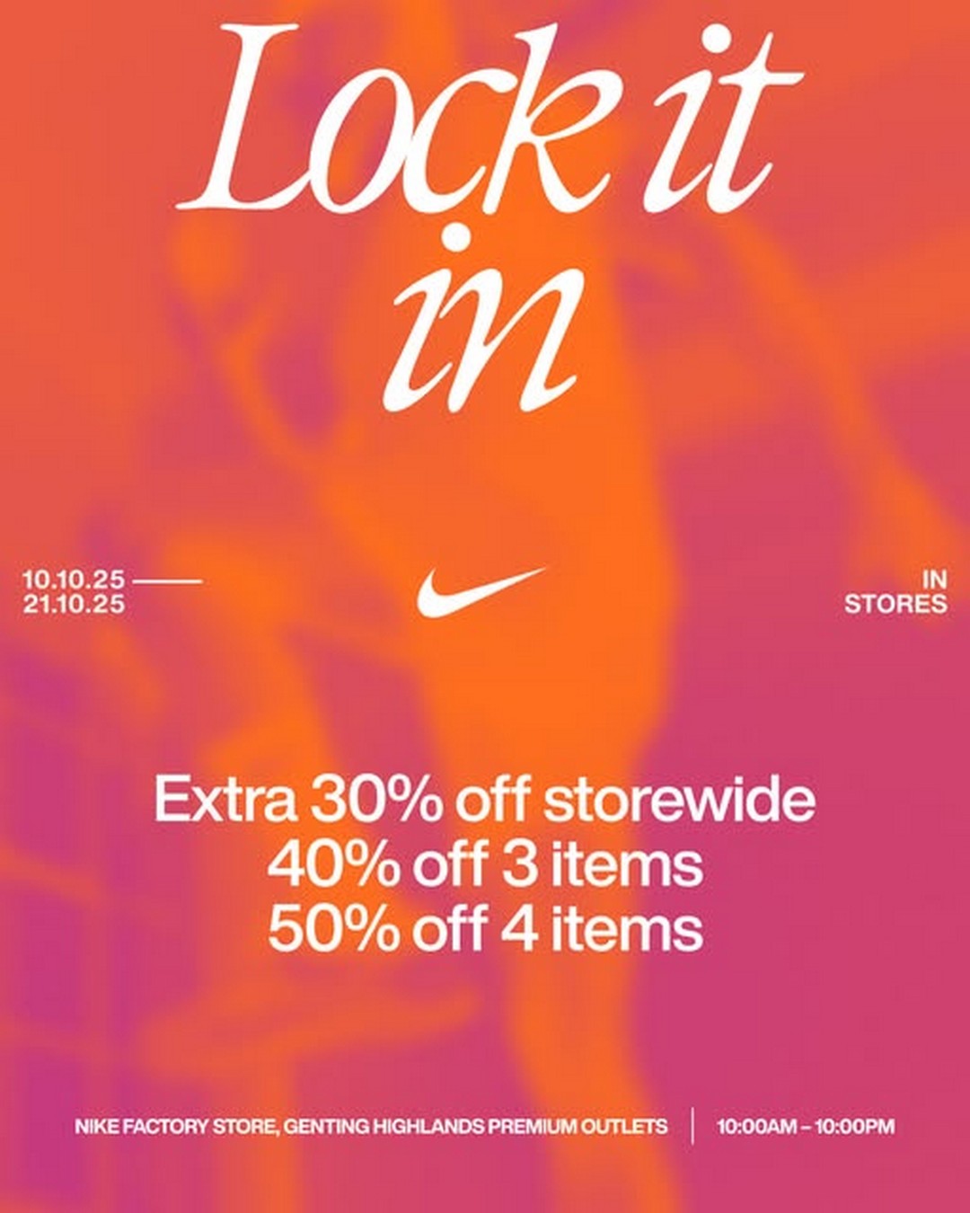 Now, here’s the exciting part — from 10 to 21 October 2025, the Nike Factory Store at Genting Highlands Premium Outlets is hosting a Special Sale that is bound to thrill bargain hunters and fashion lovers alike. This is not an ordinary sale — this is a chance to refresh that wardrobe or stock up on favourite Nike essentials at incredible prices, with savings of up to 50% OFF.