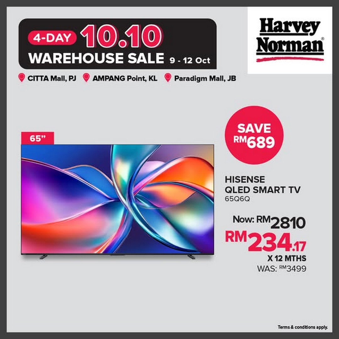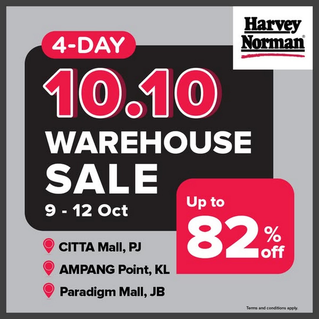 In conclusion, the Harvey Norman Malaysia 10.10 Warehouse Sale is more than just a typical sales event. It’s an opportunity to enjoy substantial discounts, access a wide variety of high-quality products, and potentially make major upgrades to your home or personal tech collection at unbeatable prices. With up to 82% off, four days of deals, and multiple store locations, it’s an event that promises both savings and satisfaction. Shoppers are encouraged to plan their visits carefully, make use of online shopping options if needed, and fully immerse themselves in the excitement of one of Malaysia’s most awaited sales events of the year.
