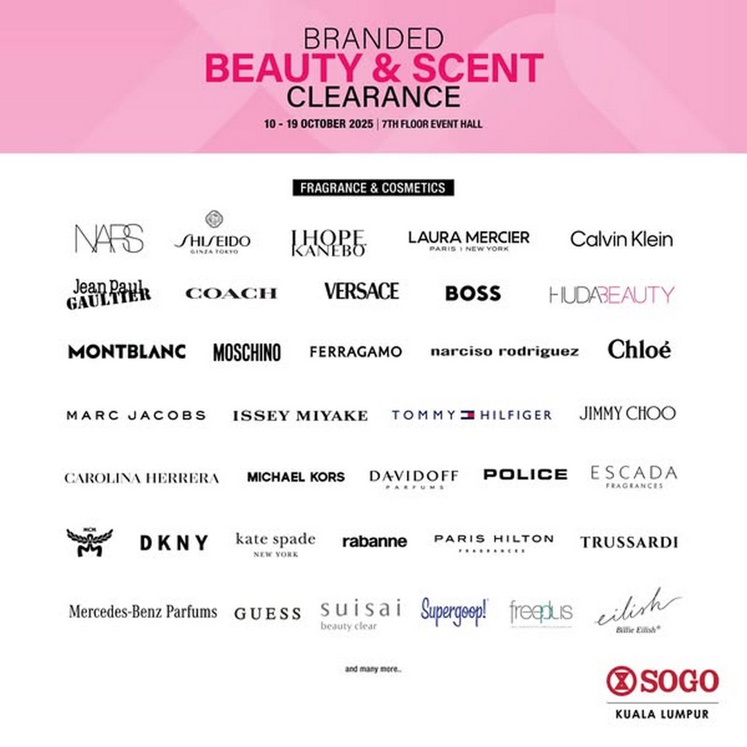 Beauty enthusiasts and fragrance lovers, it’s time to mark your calendars! SOGO Malaysia is hosting an incredible Branded Beauty & Scent Clearance at their KL flagship store, and it promises to be one of the most exciting sales events of the year. Taking place from 10th to 19th October 2025, this event brings together over 50 top beauty and fragrance brands with discounts of up to 70%, offering the perfect opportunity for shoppers to restock their skincare essentials, explore new cosmetics, or even pick up a signature scent at unbeatable prices.