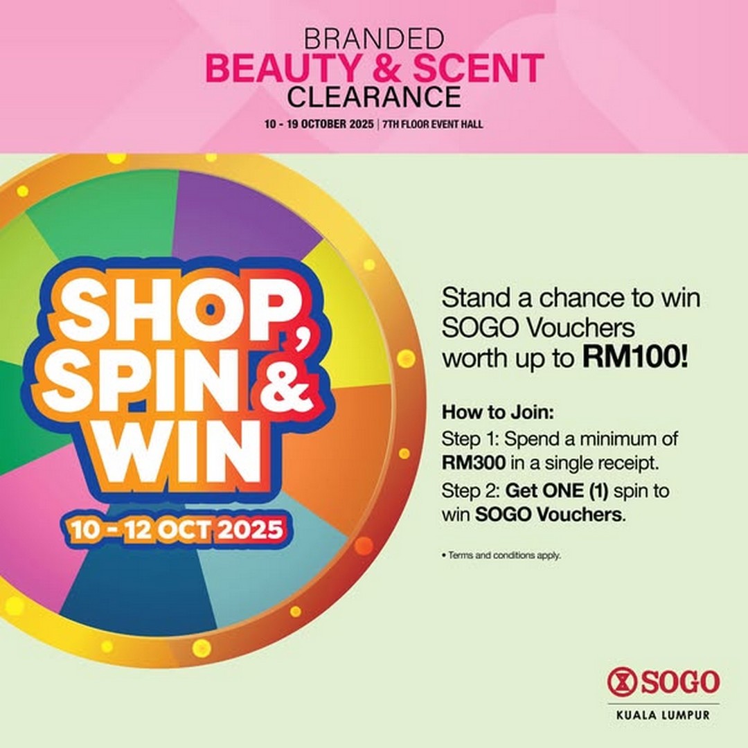 In conclusion, the SOGO Branded Beauty & Scent Clearance is more than just a sale—it’s an experience that combines unbeatable discounts, exciting perks, and wellness benefits. For beauty and fragrance lovers in Malaysia, this is an unmissable opportunity to refresh their collections, enjoy interactive promotions, and gain practical health insights, all within a single visit. They should not hesitate to plan their trip between 10th and 19th October 2025, head to SOGO KL’s 7th Floor Event Hall, and make the most of this unique combination of shopping and wellness.