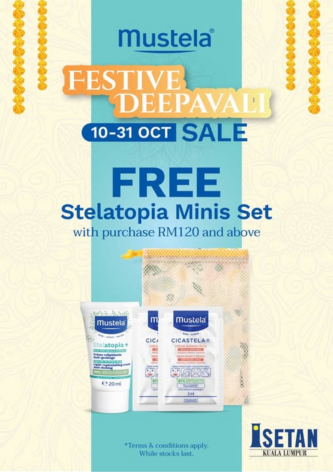 Don’t miss this chance to make your baby’s skin glow, soft, and well-cared-for this Deepavali. Shop Mustela at Isetan Kuala Lumpur or online and take home your free Stelatopia Minis Set today!