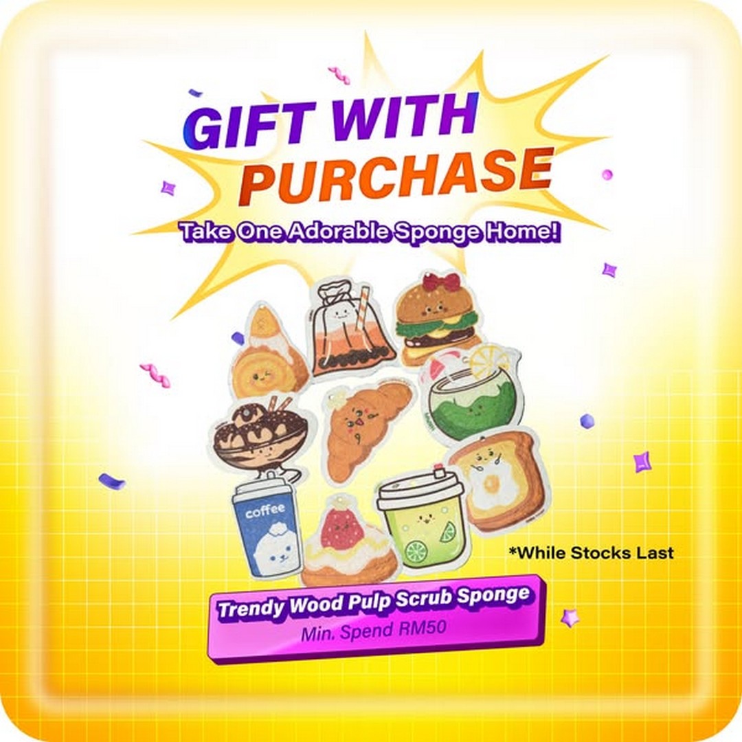 Gift With Purchase: Spend RM50 & above for a free Trendy Wood Pulp Scrub Sponge