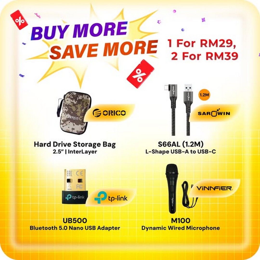 But the savings don’t stop there. ALL IT has a Buy More, Save More structure on several popular tech items. For instance, you can get one item for RM29 or two for RM39. Some of the featured products include: