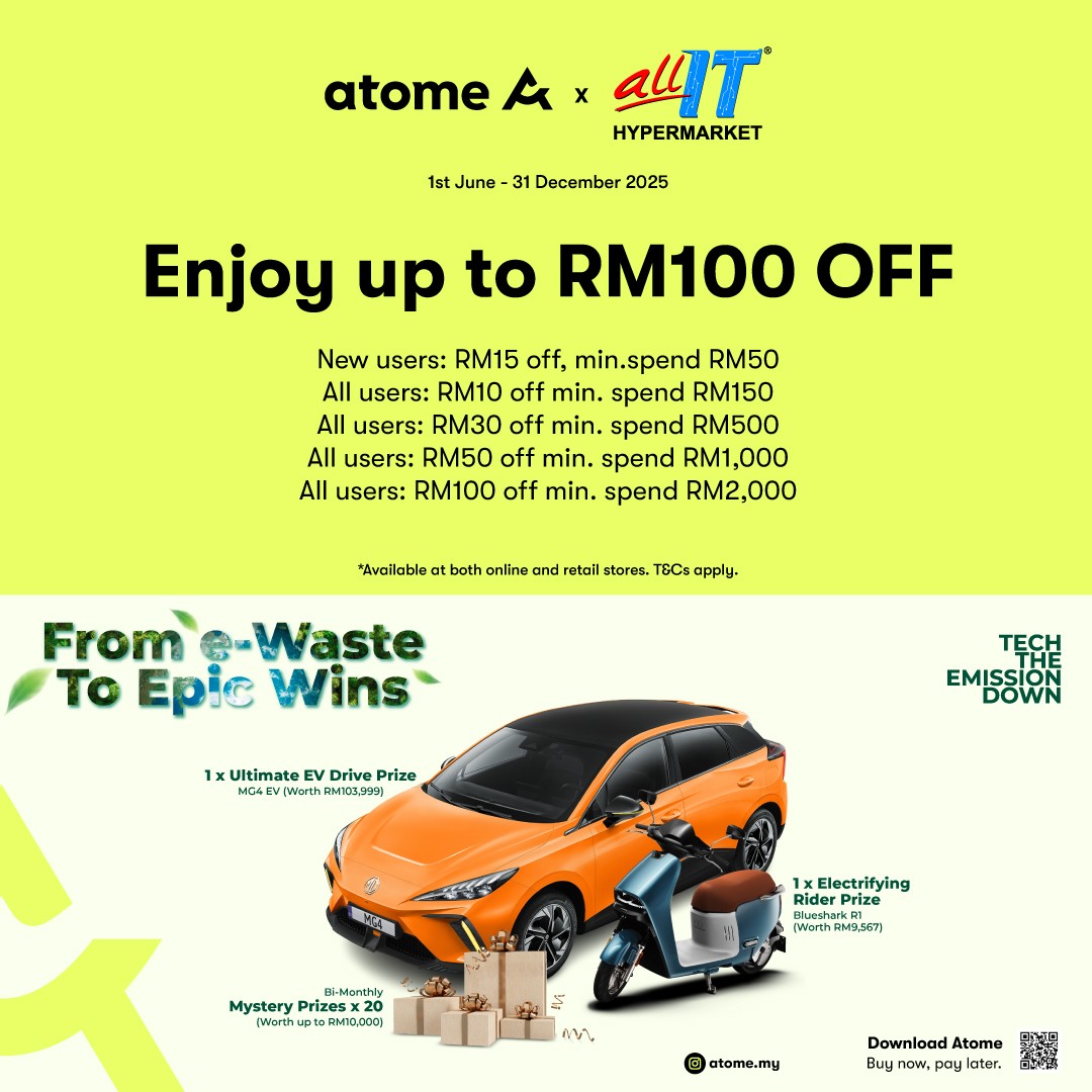 One of the most appealing aspects of this event is that it caters to both online and in-store shoppers. For those who prefer shopping from the comfort of home, ALL IT Online provides the same exciting deals. Shopping online is made even sweeter with the Atome promotion, where new users can enjoy RM15 off with a minimum spend of RM50. This makes it a great opportunity to tick off your tech shopping list without breaking the bank.