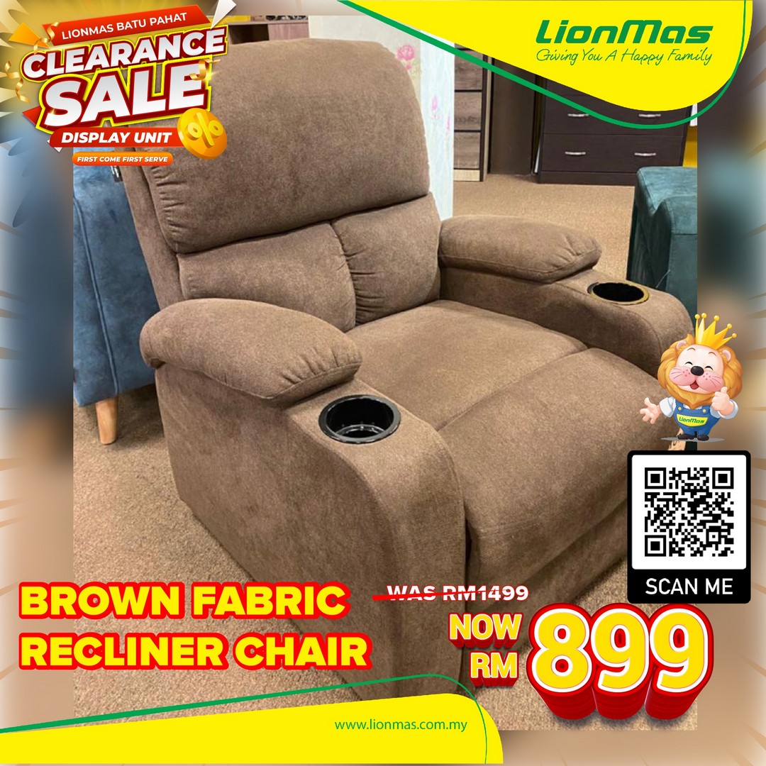 Brown Fabric Recliner Chair: RM1,499 Now Only RM899