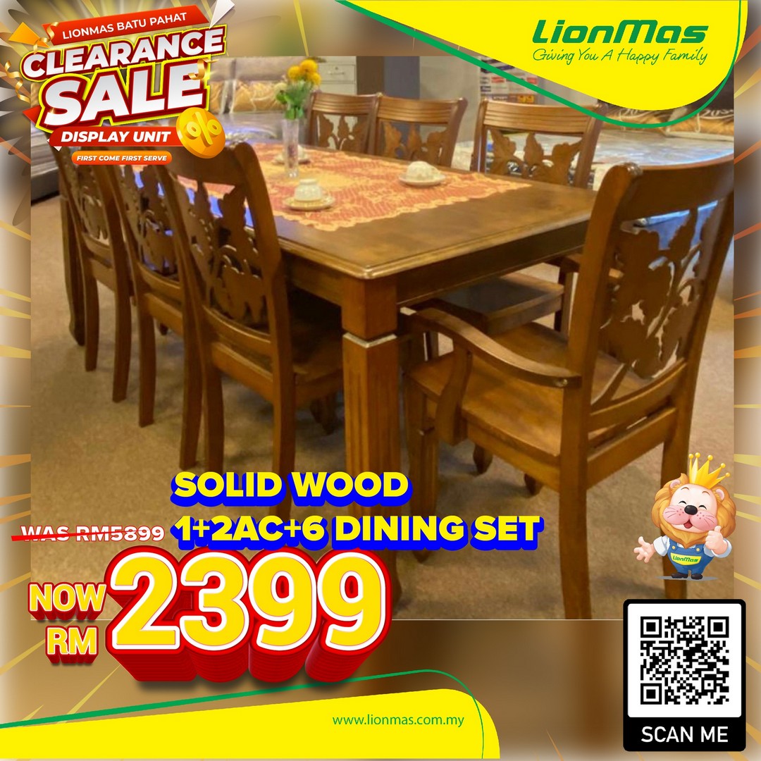 Solid Wood Dining Table Set (1+2AC+6): RM5,899 Now Only RM2,399