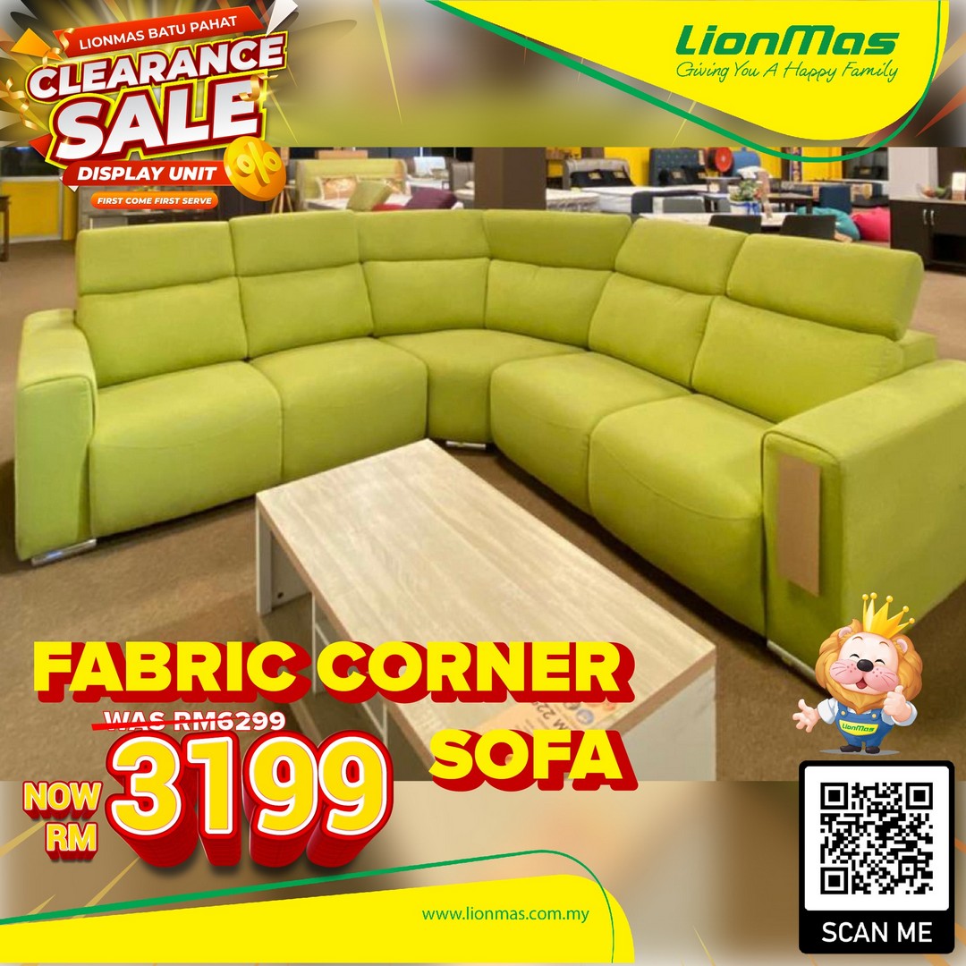 Corner Fabric Sofa: RM6,299 Now Only RM3,199