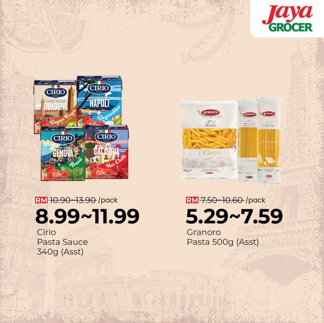 Pasta lovers can also enjoy significant savings. De Cecco Pasta (500g, assorted) is priced between RM10.99–12.99, Cirio Pasta Sauce (340g, assorted) ranges from RM8.99–11.99, and Granoro Pasta (500g, assorted) is now RM5.29–7.59. These quality products help elevate everyday meals with authentic European flavours, turning even a simple dinner into a gourmet experience. Sacla Pasta Sauces (190g, assorted) are offered at RM13.99, reduced from RM15.00–15.90, providing a variety of options for those who love experimenting with Italian recipes.