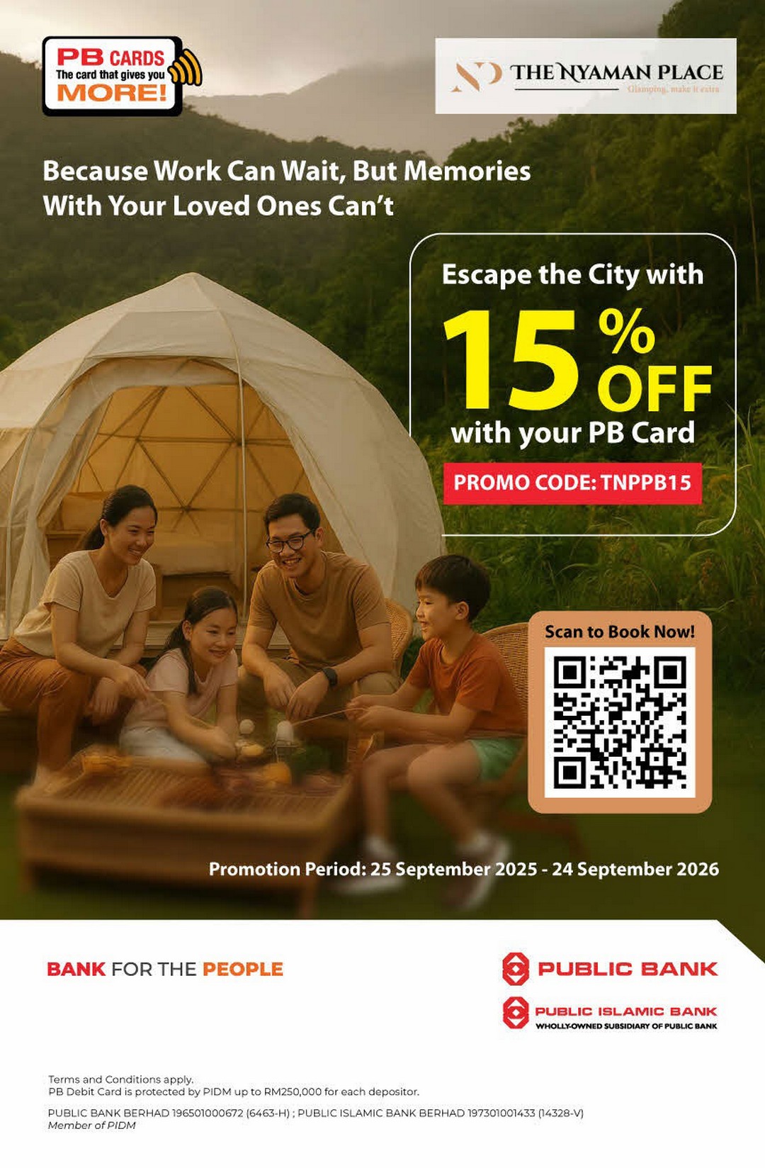 Finding a balance between comfort and nature can often come with a hefty price tag. However, with this promotion, Public Bank Cardmembers can indulge in a glamping retreat for a fraction of the usual cost. The 15% discount goes a long way, especially when travelling with family or friends.