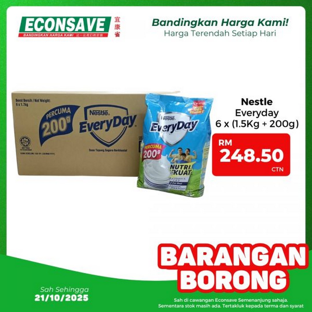 Nestle Everyday (6 x 1.5Kg + 200g) – RM248.50 per carton: A pantry essential for baking and cooking, Nestle Everyday milk powder offers convenience without compromising taste.