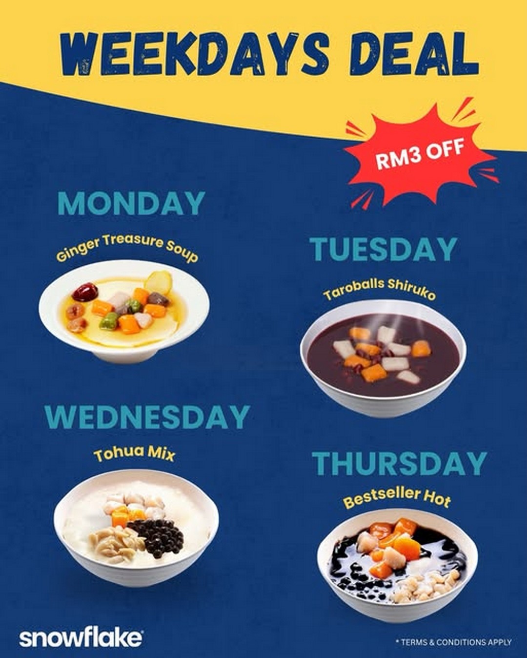 So, if the day feels long or the evening calls for a little indulgence, head over to Snowflake for a bowl of heart-warming dessert – and enjoy RM3 OFF while the offer lasts.