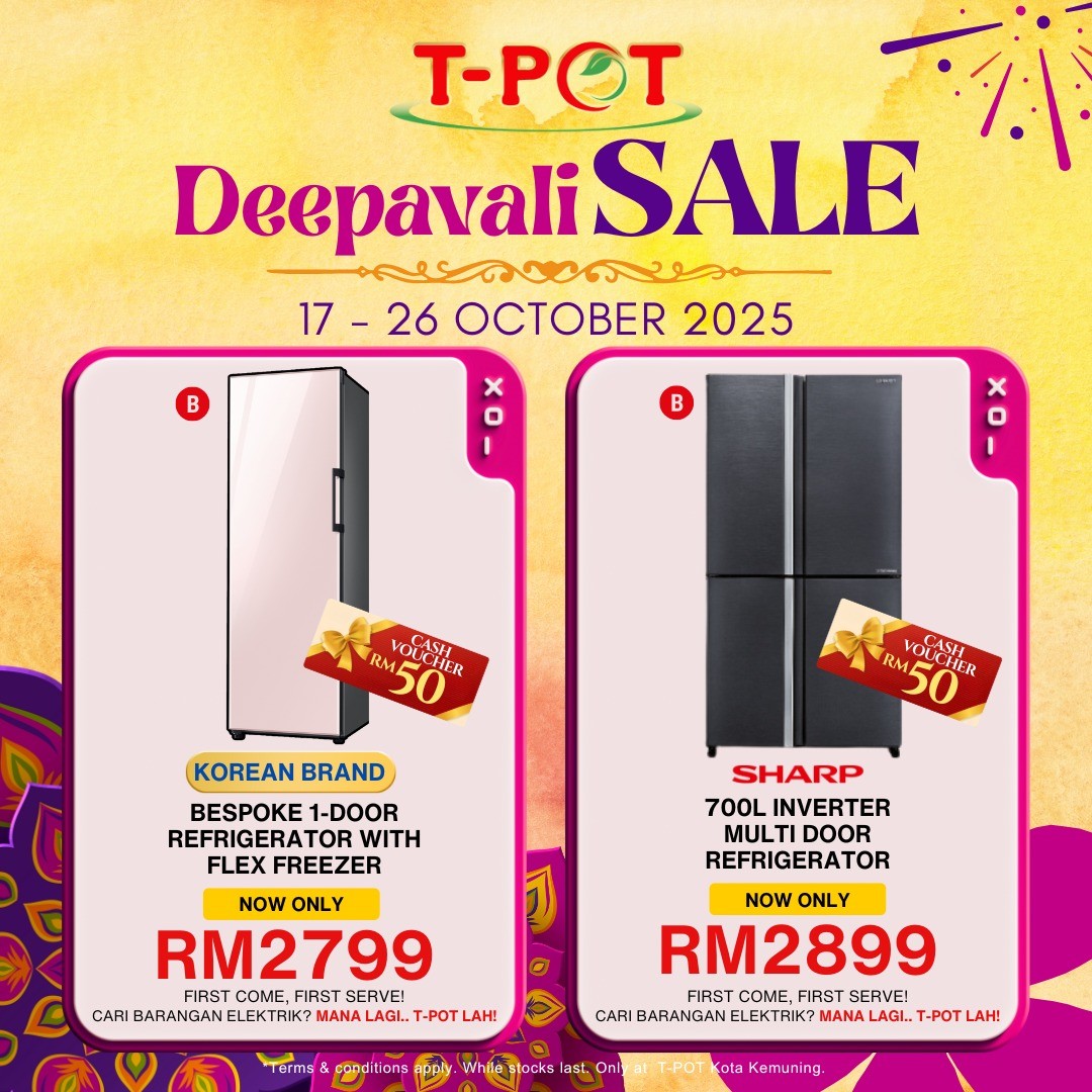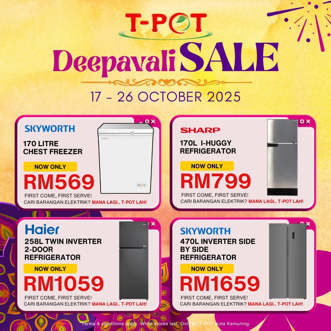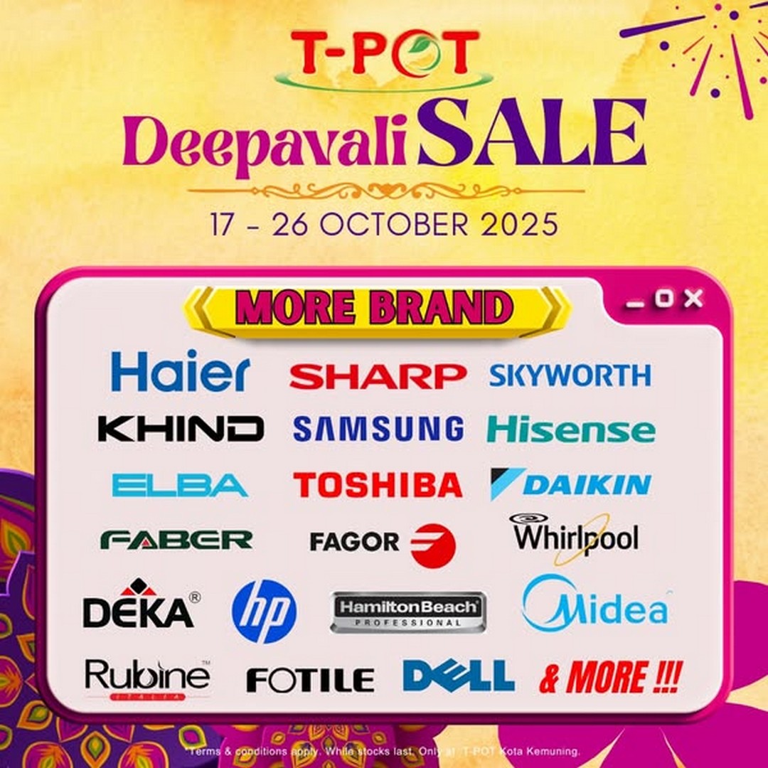 Deepavali is just around the corner, and T-Pot Malaysia is making it the perfect reason to upgrade your home appliances while enjoying some incredible savings. From 17th to 26th October 2025, T-Pot Kota Kemuning will host a Deepavali Sale that promises massive discounts across a wide range of electronics—from TVs and refrigerators to air conditioners, washing machines, and more. If them have been eyeing a new home appliance or planning a complete home upgrade, this is the moment to shop smart and save big.