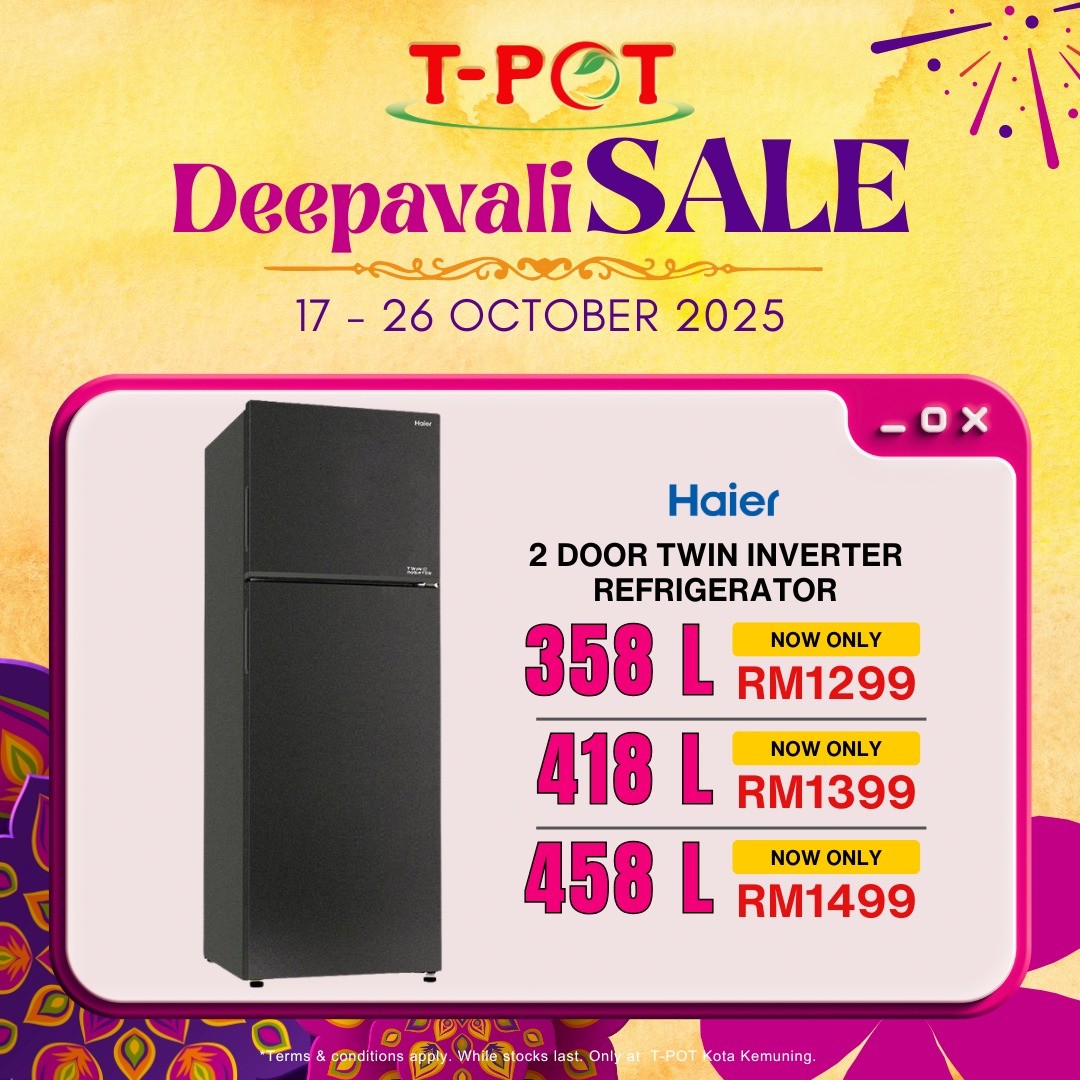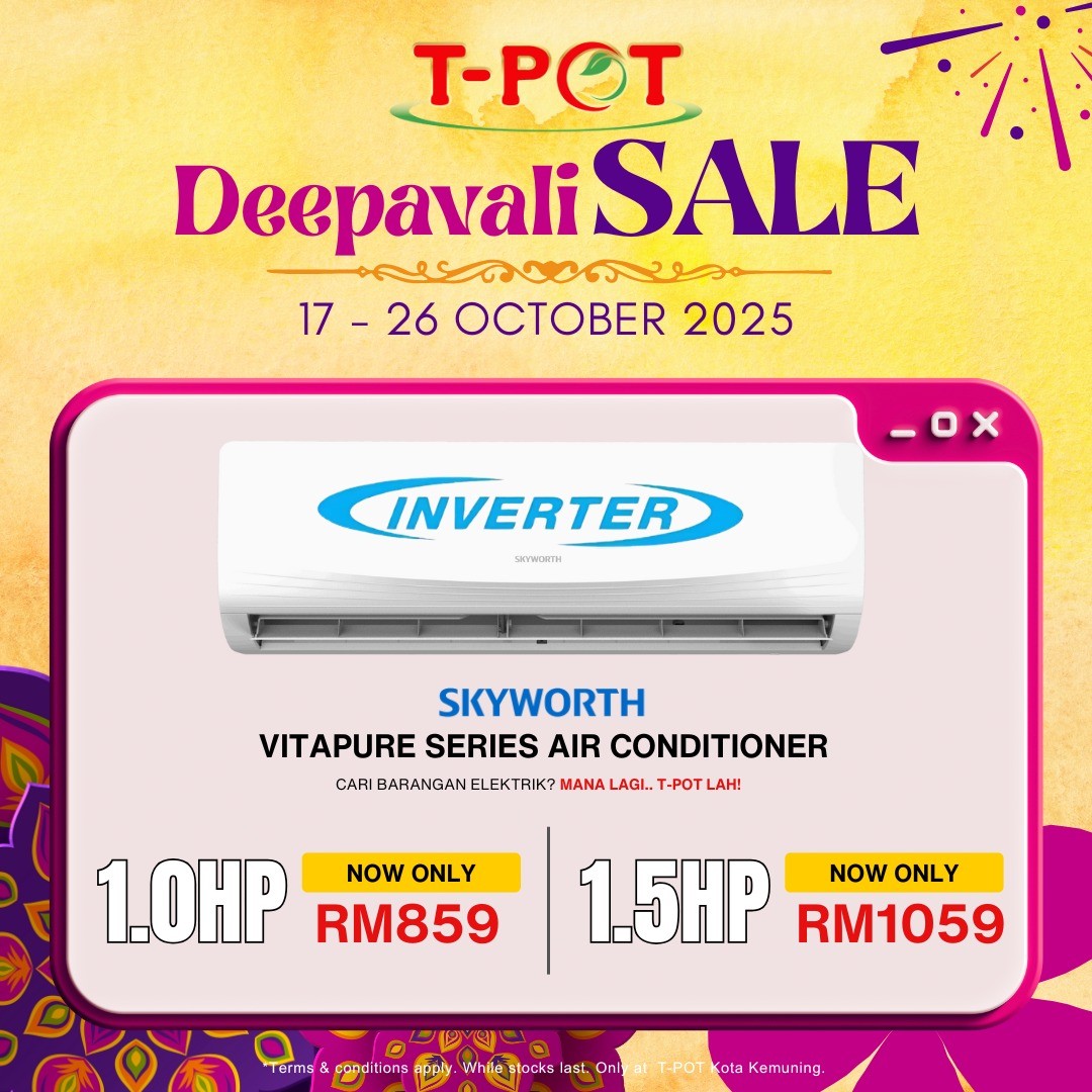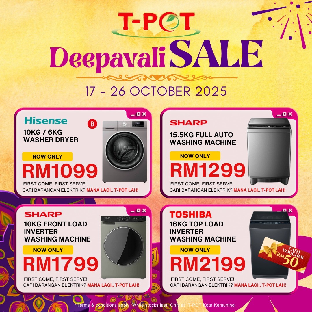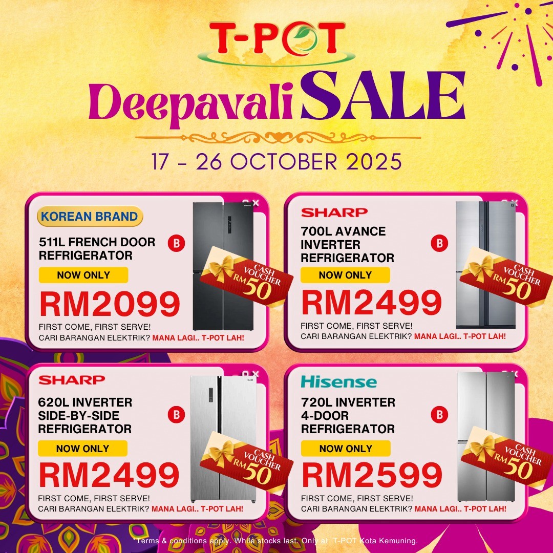 Deepavali is just around the corner, and T-Pot Malaysia is making it the perfect reason to upgrade your home appliances while enjoying some incredible savings. From 17th to 26th October 2025, T-Pot Kota Kemuning will host a Deepavali Sale that promises massive discounts across a wide range of electronics—from TVs and refrigerators to air conditioners, washing machines, and more. If them have been eyeing a new home appliance or planning a complete home upgrade, this is the moment to shop smart and save big.