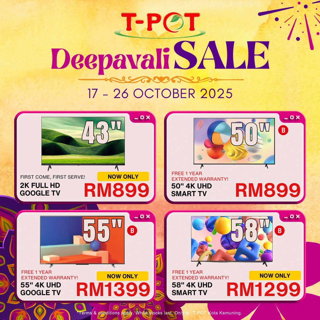 For those who have been hesitating on whether to upgrade their appliances, this Deepavali Sale is the ideal opportunity to act. With TVs, fridges, washing machines, air conditioners, and more all available at discounted rates, it’s possible to make significant home improvements without breaking the bank. T-Pot Malaysia’s approach is both practical and customer-focused, combining affordability with convenience and service excellence.