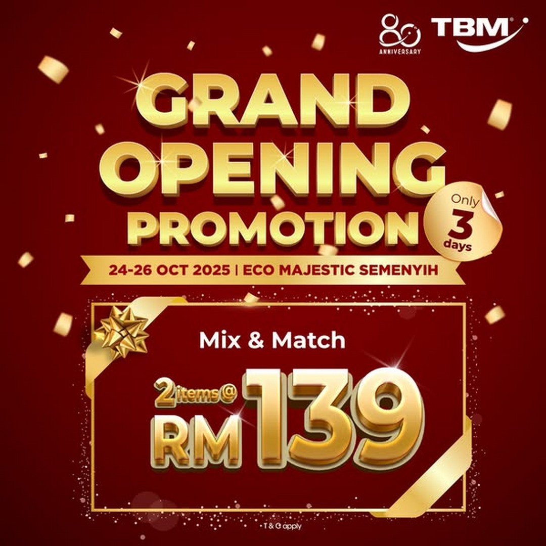 There is something quite special about the excitement that surrounds the opening of a new store, especially when it comes with a deal that’s hard to resist. TBM Malaysia has officially opened the doors to its new branch at Eco Majestic Semenyih, and to celebrate, they are rolling out a Mix & Match Grand Opening Sale that offers customers the chance to pick any 2 items for just RM139.