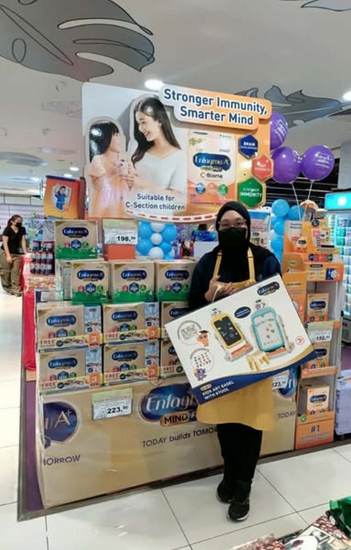 Here’s how it works: shoppers who spend RM400 on Enfagrow A+ Mind Pro will receive a free foldable trolley. This is a practical and convenient gift, ideal for parents who often carry groceries or children’s items. Spending RM600 elevates the reward to a free luggage set—perfect for families planning a getaway or for those looking to upgrade their travel essentials. The ultimate reward comes for those who spend RM800, who will receive a Kids Art Easel with Stool. This is a brilliant gift that encourages creativity and hands-on learning, making it both fun and educational.