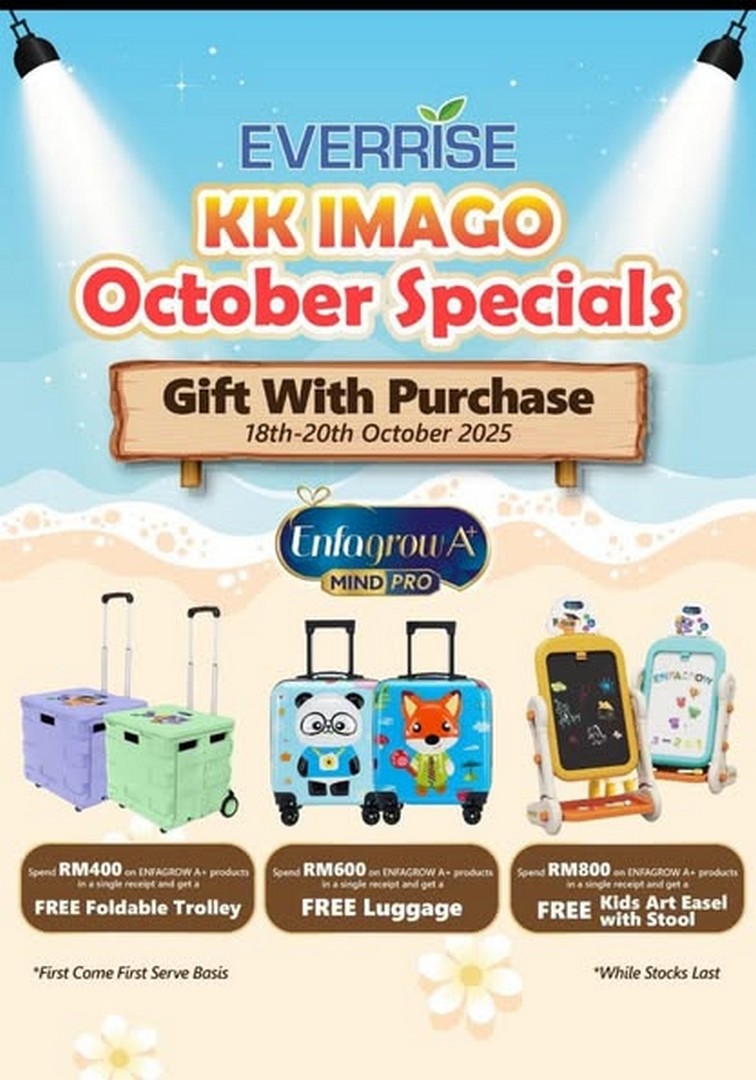 October is shaping up to be an exciting month for parents and caregivers in Kota Kinabalu, as Everrise KK Imago rolls out their exclusive October Specials. If you’ve been looking for a reason to stock up on Enfagrow A+ Mind Pro, this is the perfect opportunity. From 18th to 20th October 2025, shoppers at Everrise KK Imago will be able to enjoy incredible rewards when they purchase Enfagrow A+ Mind Pro for their little ones.