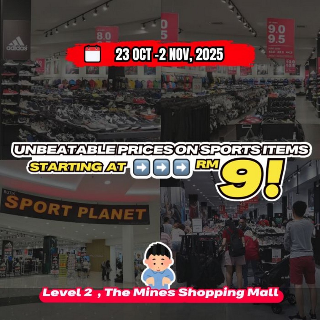 If you’ve been waiting for the perfect time to upgrade your sportswear collection or grab some branded essentials at unbeatable prices, then this is your moment. Sport Planet is hosting their much-anticipated Kaw Kaw Sale at The Mines Shopping Mall, and it promises to be a shopping spree like no other. Running for 11 days only, from 23 October to 2 November 2025, this event offers discounts that are hard to resist – up to 80% off storewide, with an additional 20% off on top. For those who love a good bargain, this is the sale to mark in your calendar.