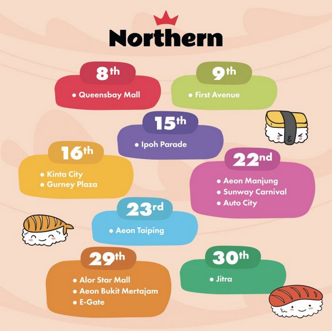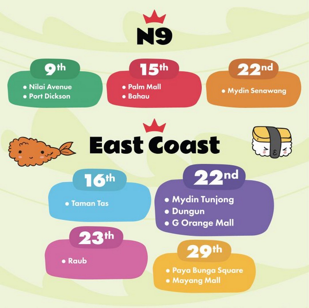 The Sushi Making Class for Kids will be available at selected Sushi King outlets nationwide throughout November 2025. Here’s a detailed schedule by region, so families can plan their visit accordingly: