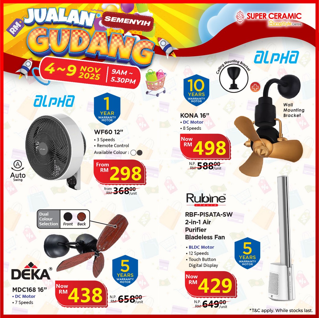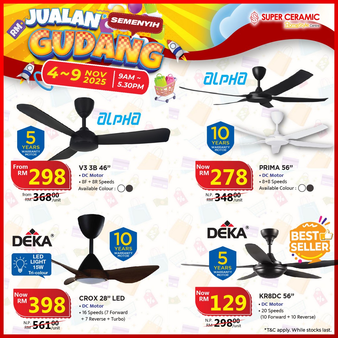 DC Motor Ceiling Fans starting from RM99 per unit – It’s almost unheard of to find ceiling fans at such an affordable rate. These energy-efficient DC motor fans not only save power but also deliver quieter and smoother operation, making them ideal for any room in the house.