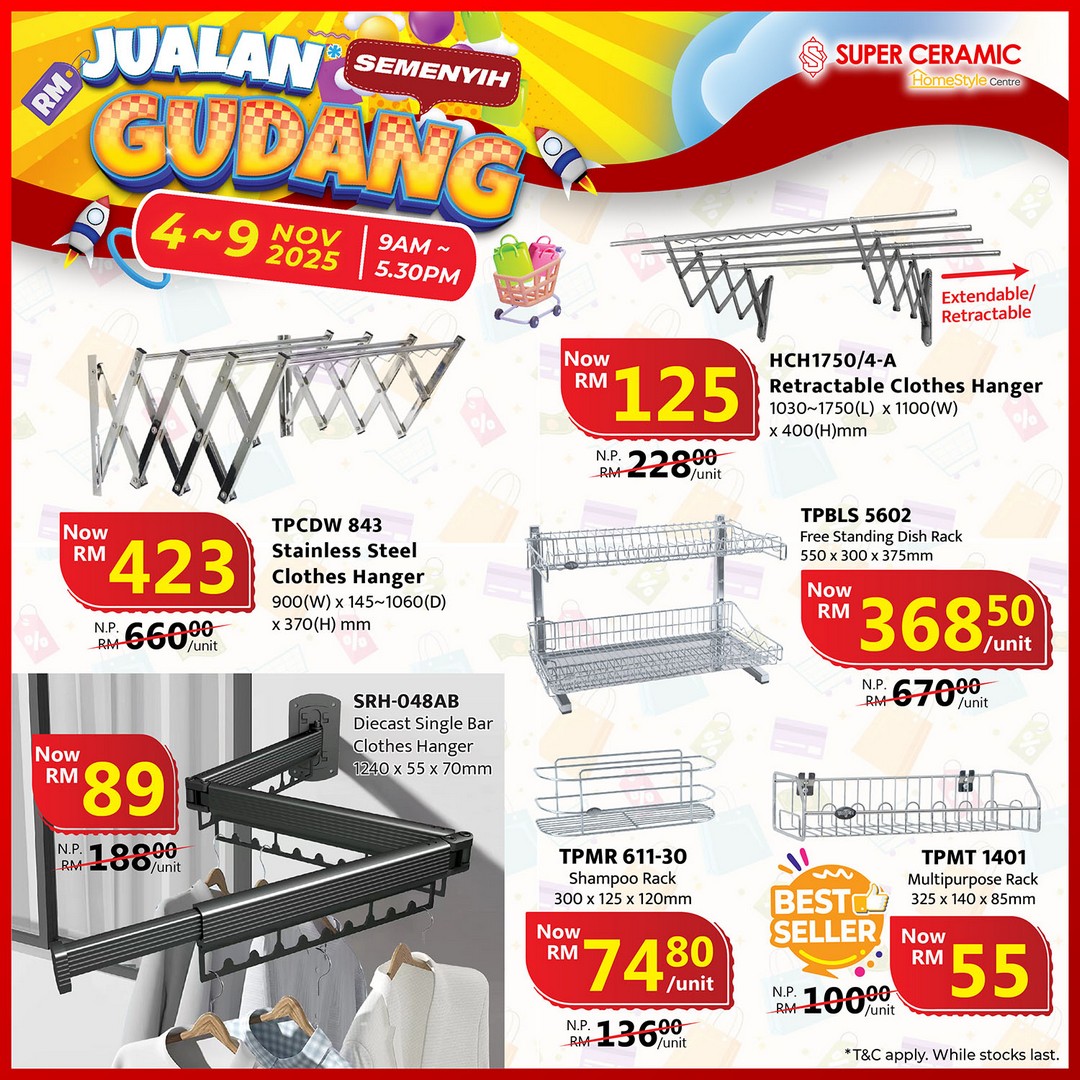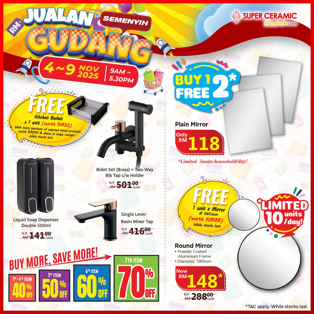 The sale takes place at Super Ceramic Semenyih, which is conveniently accessible by car. For those unfamiliar with the area, the location can easily be found using either Waze or Google Maps. The warehouse will be open daily from 9.00 am to 5.30 pm throughout the six-day event.