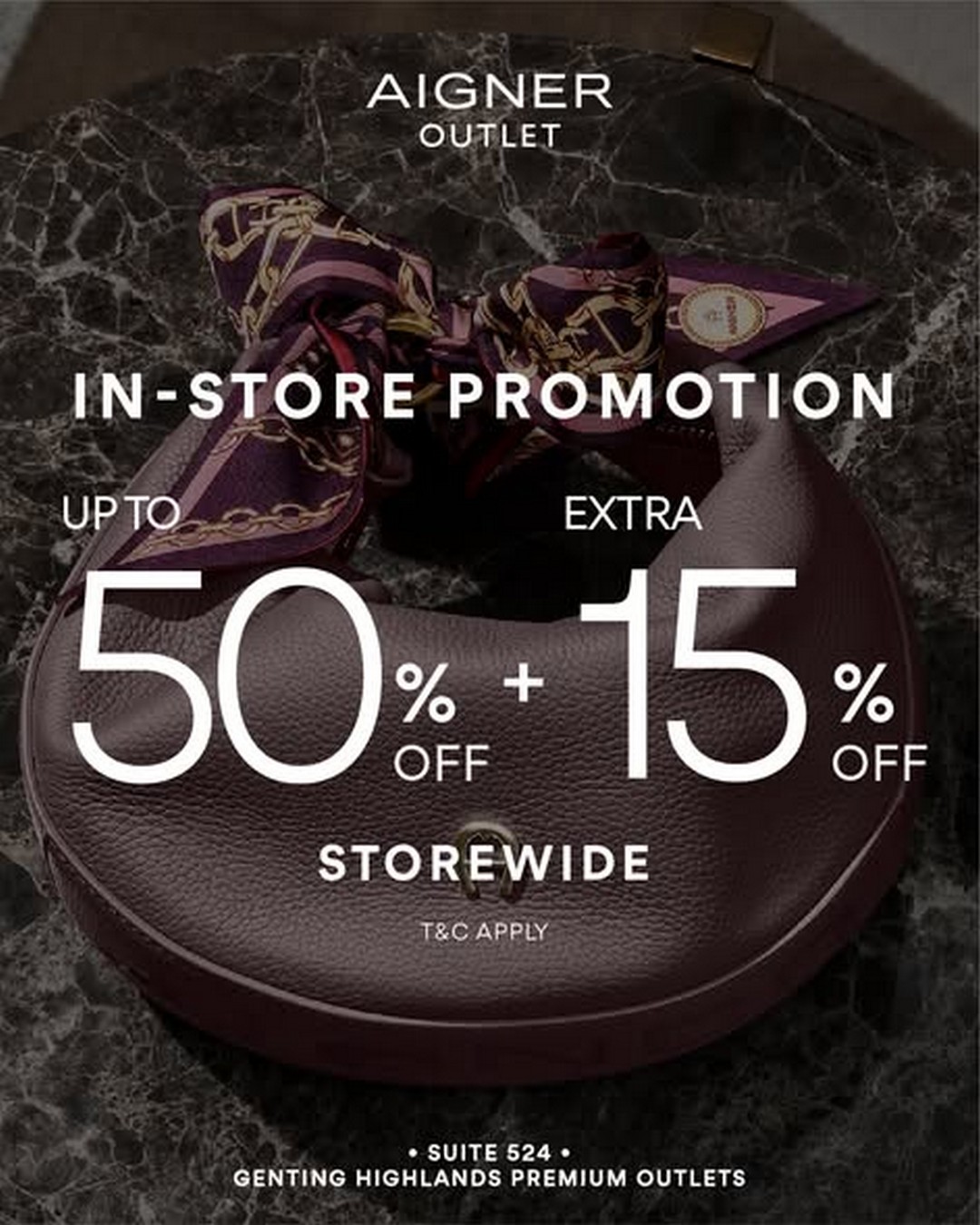 When it comes to timeless style and quality craftsmanship, Aigner stands as one of the most respected luxury brands in the world. For those who have always admired their refined handbags, elegant accessories, and beautifully made leather goods, this November is your perfect opportunity to finally own a piece of Aigner sophistication without breaking the bank. From 1–30 November 2025, Aigner is hosting a Special Sale at Genting Highlands Premium Outlets, offering up to 50% savings storewide and an additional 15% discount on selected items.