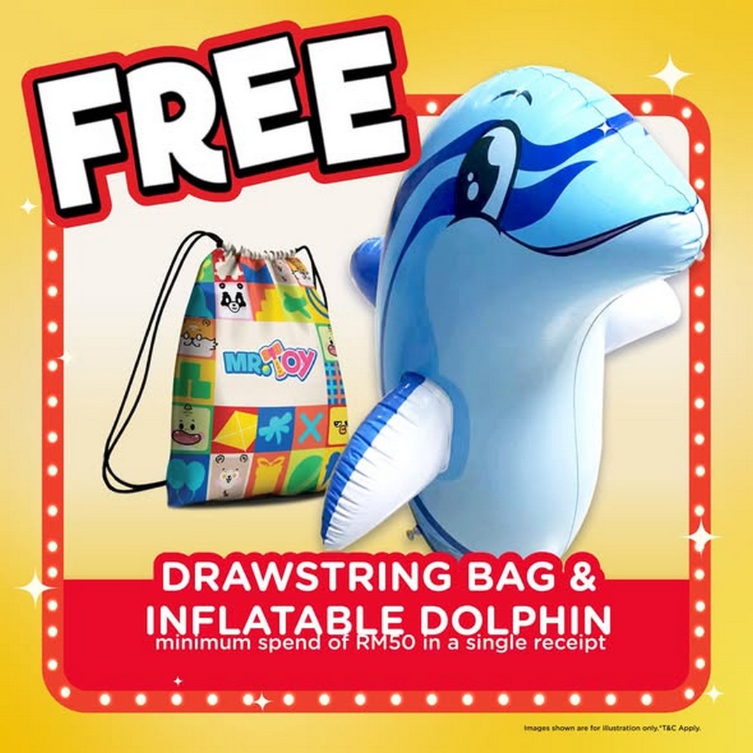 Spend RM50 in a single receipt and receive an Inflatable Dolphin and a Drawstring Bag absolutely free.
