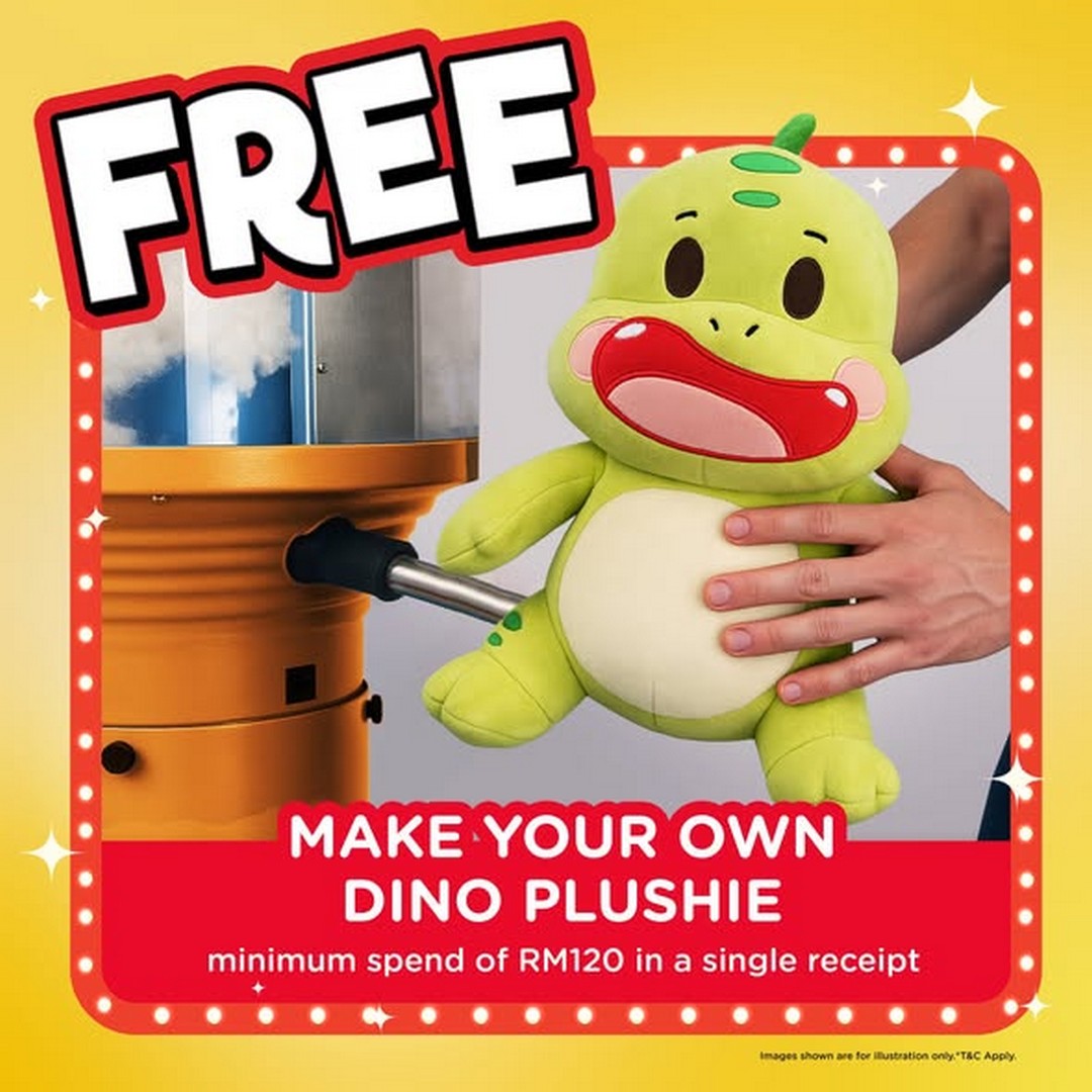 Spend RM120 or more in one receipt and enjoy an interactive reward — a Make Your Own Dino kit, perfect for kids who love building and creating.