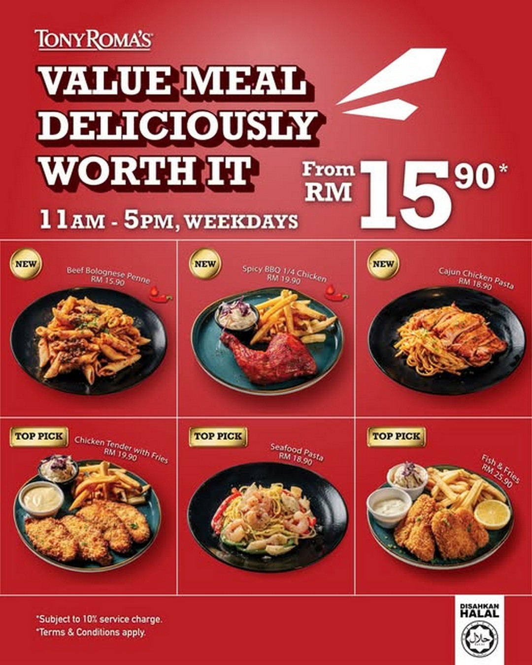 If there’s one thing Malaysians love, it’s a good meal at a great price. And Tony Roma’s Malaysia has just made weekday lunches a whole lot more exciting. Starting from 4 November 2025, diners can indulge in their Value Meal promotion, available from 11:00AM to 5:00PM, with prices starting from just RM15.90.