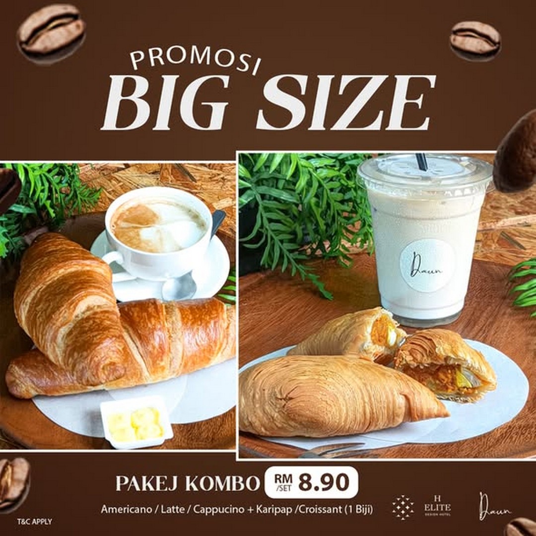 If there’s one thing Malaysians love, it’s a good cup of coffee paired with something warm, flaky, and comforting from the oven. And when a hotel café like Daun Coffee House in H Elite Design Hotel Kota Bharu offers an irresistible pastry promotion, it’s definitely something worth talking about. This latest Big Size Promotion isn’t just about bigger portions – it’s about indulgence, value, and the kind of satisfaction that only a perfectly brewed coffee and a fresh pastry can deliver.