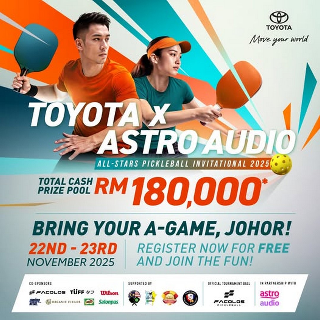 Sports fans and Toyota enthusiasts are in for an exciting weekend this November, as Toyota Malaysia kicks off their Toyota x Astro Audio All-Stars Pickleball Invitational 2025 in Johor. Happening from 22 to 23 November 2025, this event marks the first stop of the nationwide pickleball tournament series that is expected to bring high energy, friendly competition, and fun-filled activities for families and players alike.