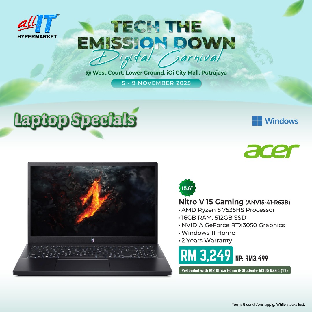 For anyone in the market for a new laptop or looking to upgrade their tech setup, ALL IT HYPERMARKET is hosting something truly unmissable. From 5th to 9th November 2025, the Tech The Emission Digital Carnival at West Court, Lower Ground, IOI City Mall, Putrajaya is set to offer huge savings on the latest laptops — with discounts of up to RM750.